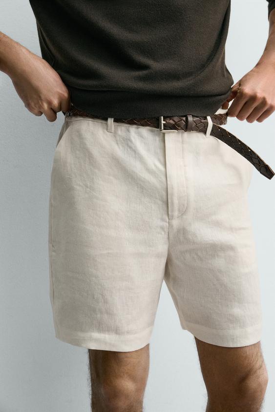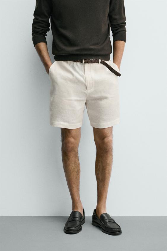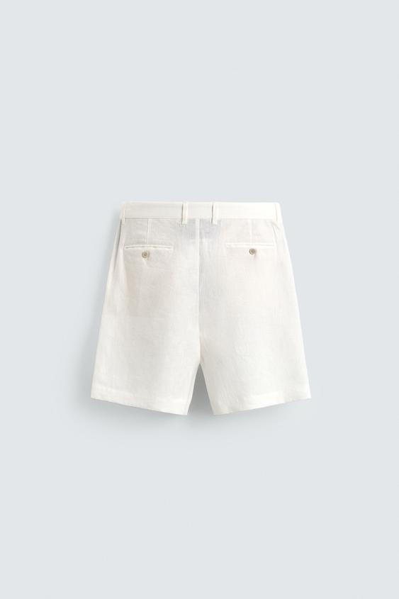 ZARA БЕРМУДЫ ИЗ 100% ЛЬНА КЛАССИЧЕСКОГО КРОЯ, БЕЛЫЙ