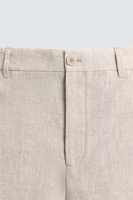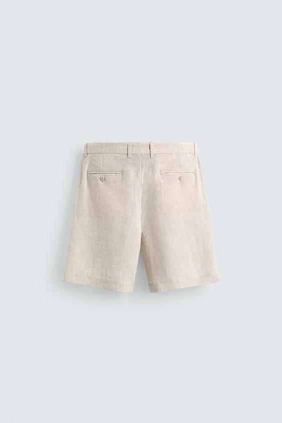ZARA БЕРМУДЫ ИЗ 100% ЛЬНА КЛАССИЧЕСКОГО КРОЯ, СВЕТЛО-БЕЖЕВЫЙ