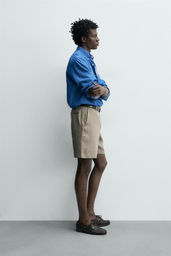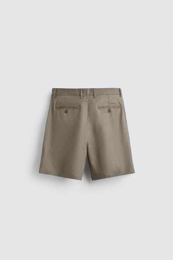 ZARA БЕРМУДЫ ИЗ 100% ЛЬНА КЛАССИЧЕСКОГО КРОЯ, СВЕТЛО-БЕЖЕВЫЙ