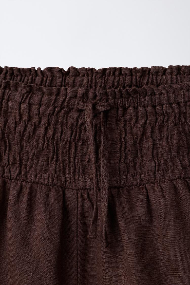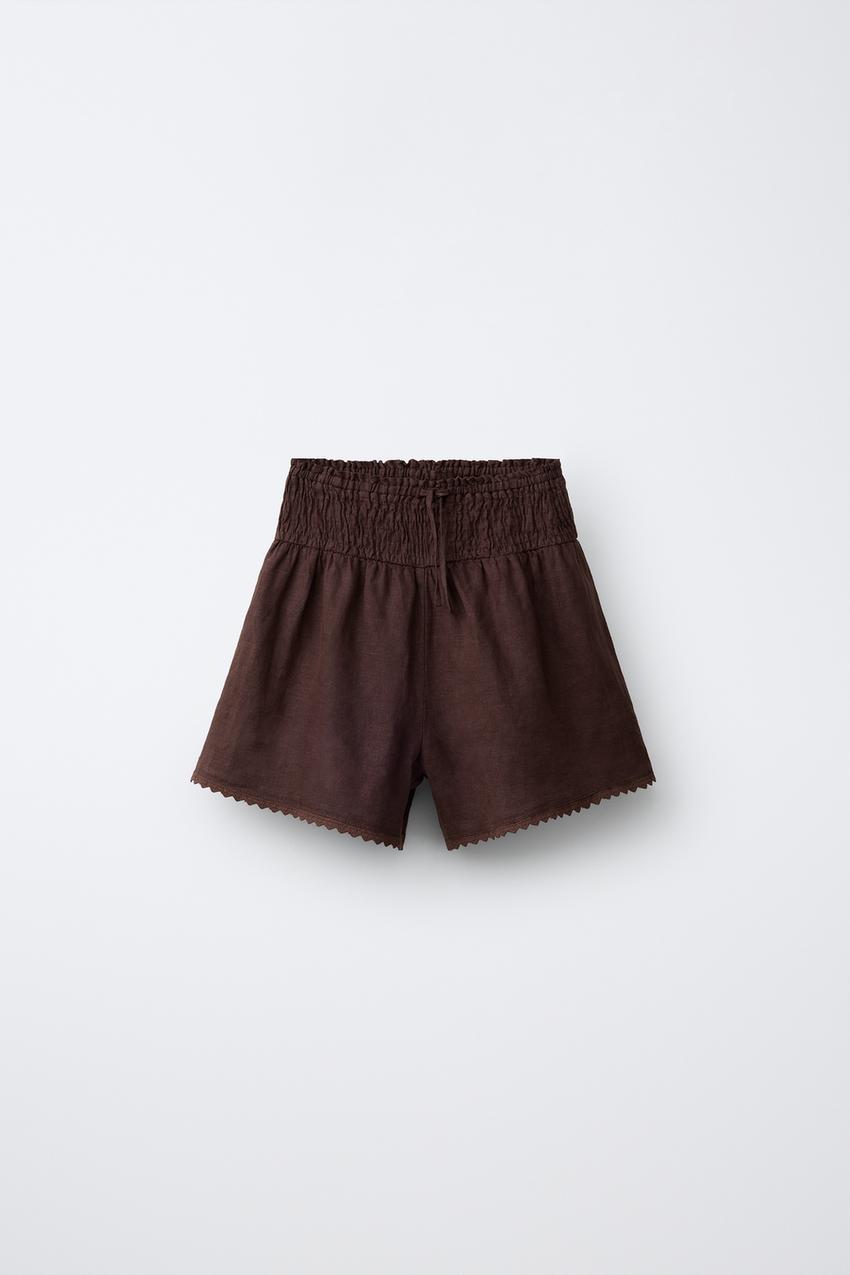 ZARA БЕРМУДЫ ИЗ 100% ЛЬНА С КРУЖЕВОМ, КОРИЧНЕВЫЙ