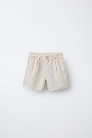 ZARA БЕРМУДЫ ИЗ 100% ЛЬНА, СВЕТЛО-БЕЖЕВЫЙ