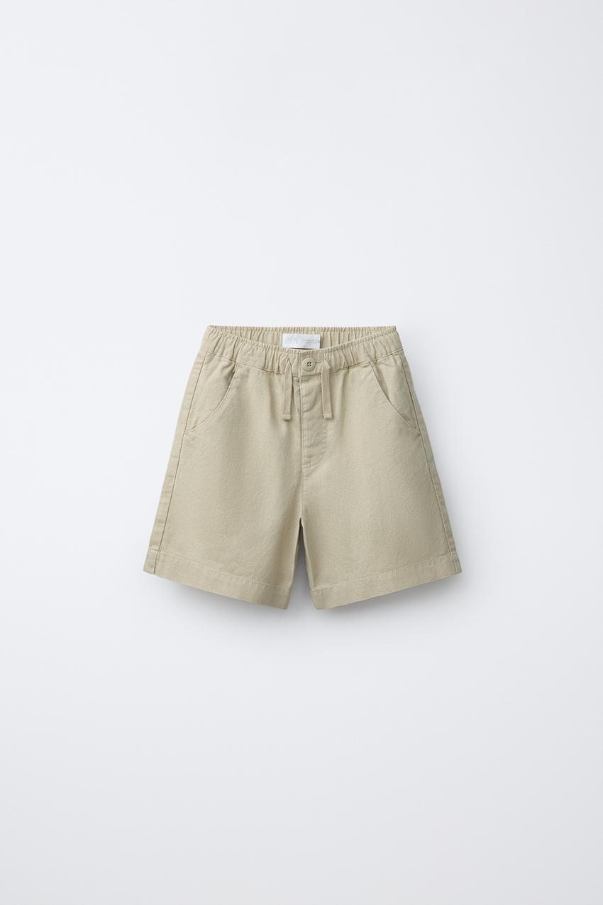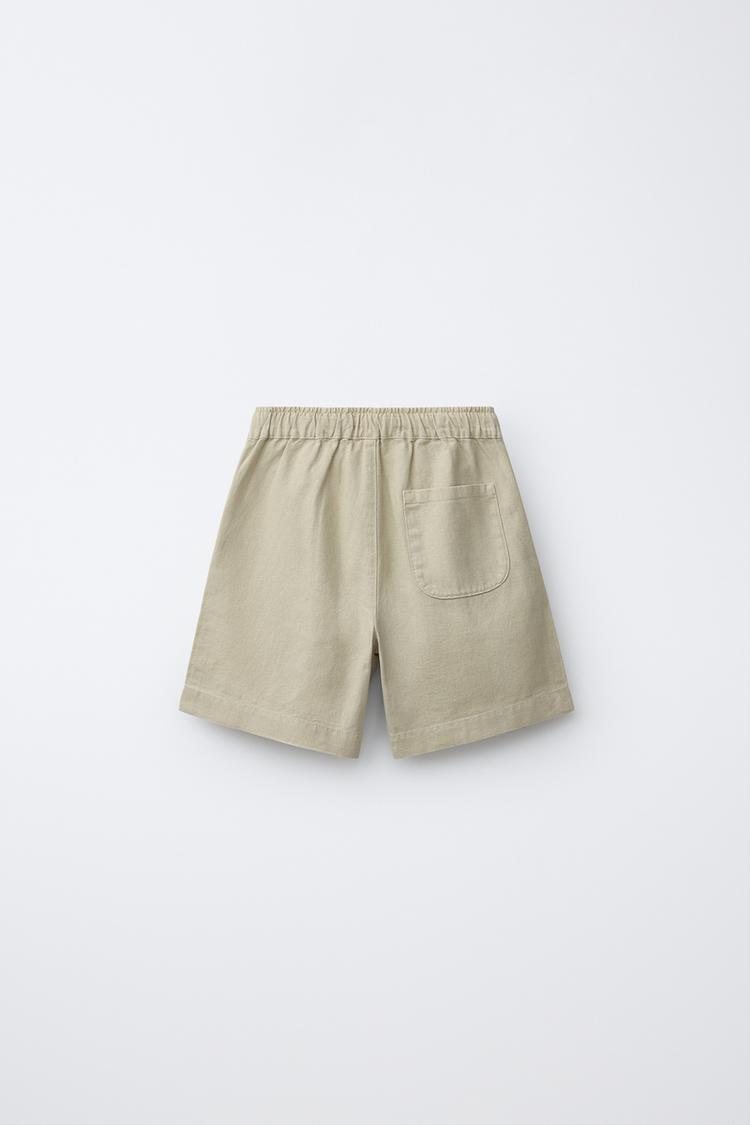ZARA БЕРМУДЫ ИЗ СМЕСОВОГО ЛЬНА И ХЛОПКА, ЗЕЛЕНЫЙ