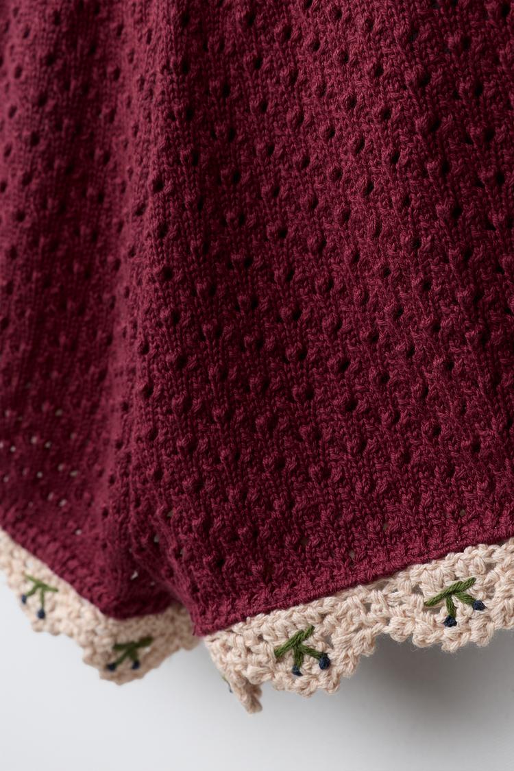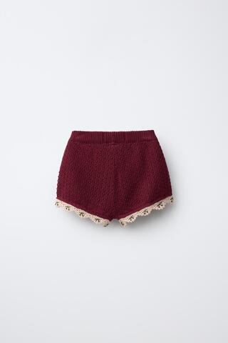 ZARA БЕРМУДЫ ИЗ ТРИКОТАЖА С ДЕТАЛЯМИ КРОШЕ, БОРДОВЫЙ