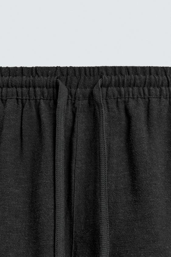 ZARA БЕРМУДЫ RELAXED FIT ИЗ ВИСКОЗЫ И ЛЬНА, ЧЕРНЫЙ