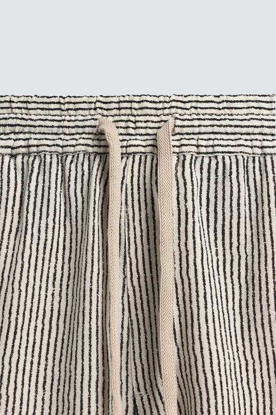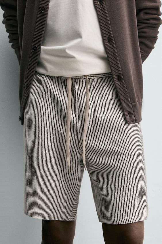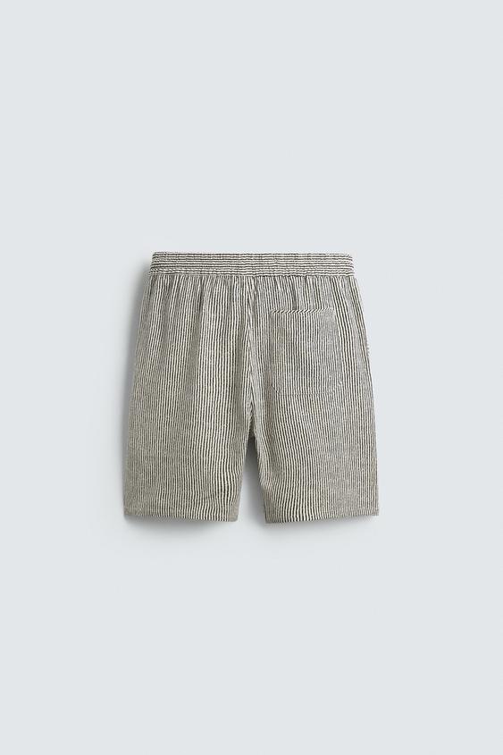 ZARA БЕРМУДЫ RELAXED FIT ИЗ ВИСКОЗЫ И ЛЬНА, ПОЛОСКИ