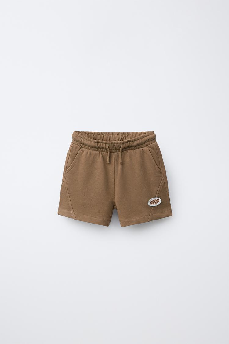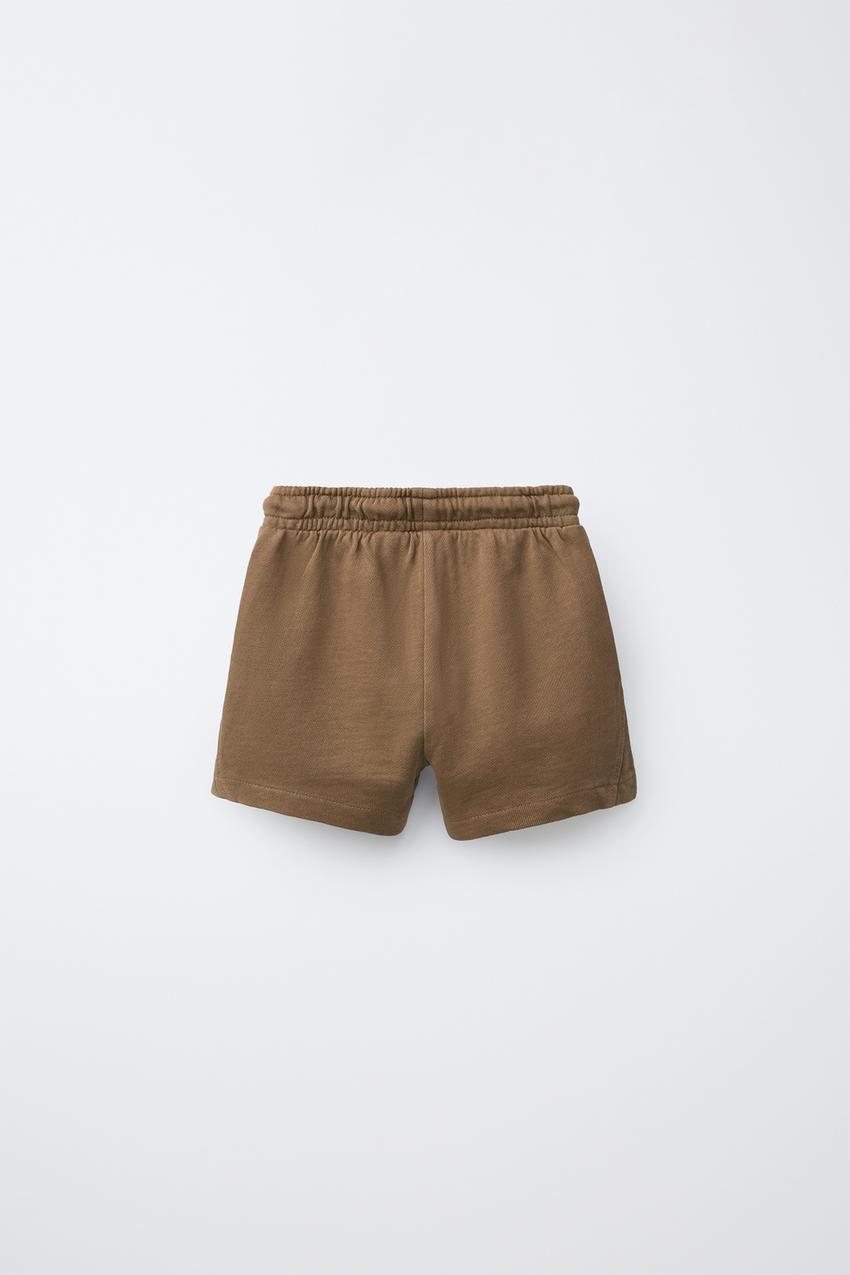 ZARA БЕРМУДЫ С НАШИВКОЙ И ОКРАШИВАНИЕМ GARMENT DYE, СВЕТЛО-КОРИЧНЕВЫЙ