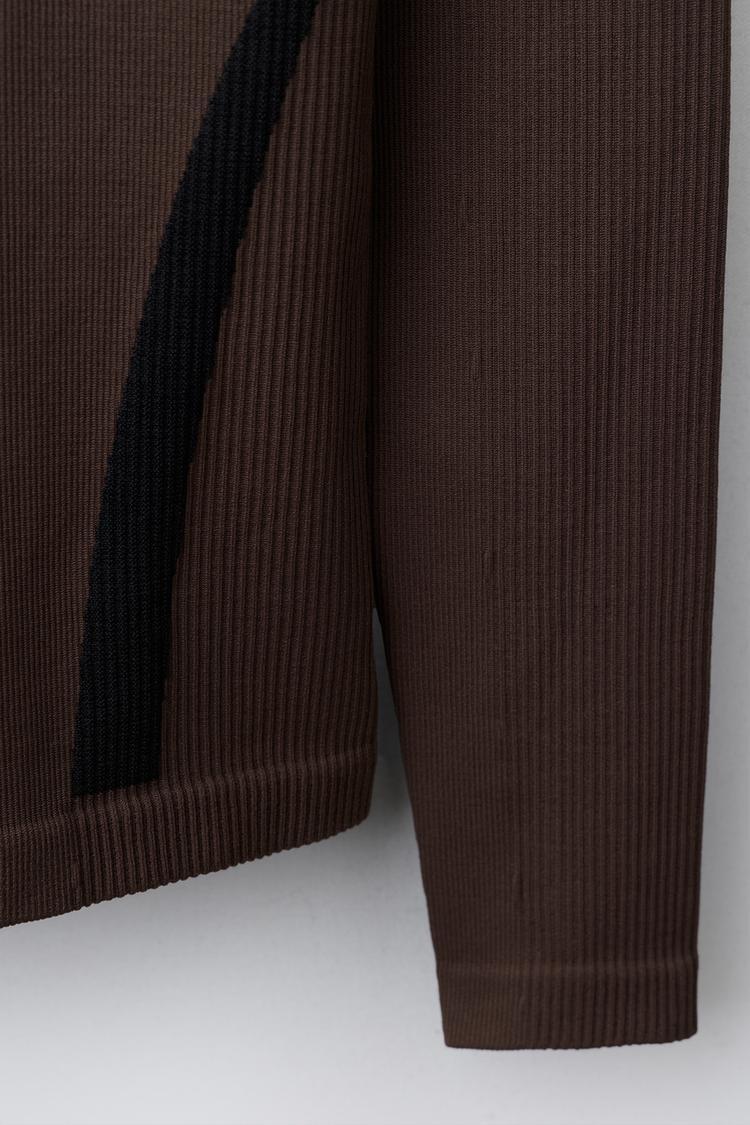 Футболка без швов, с круглым вырезом и длинными рукавами.