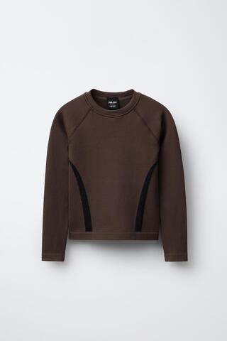 ZARA БЕСШОВНАЯ ФУТБОЛКА, КОРИЧНЕВЫЙ