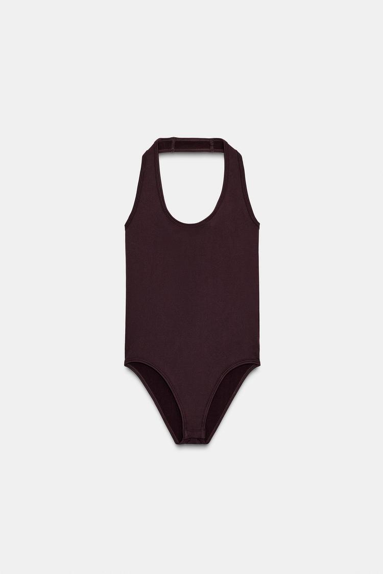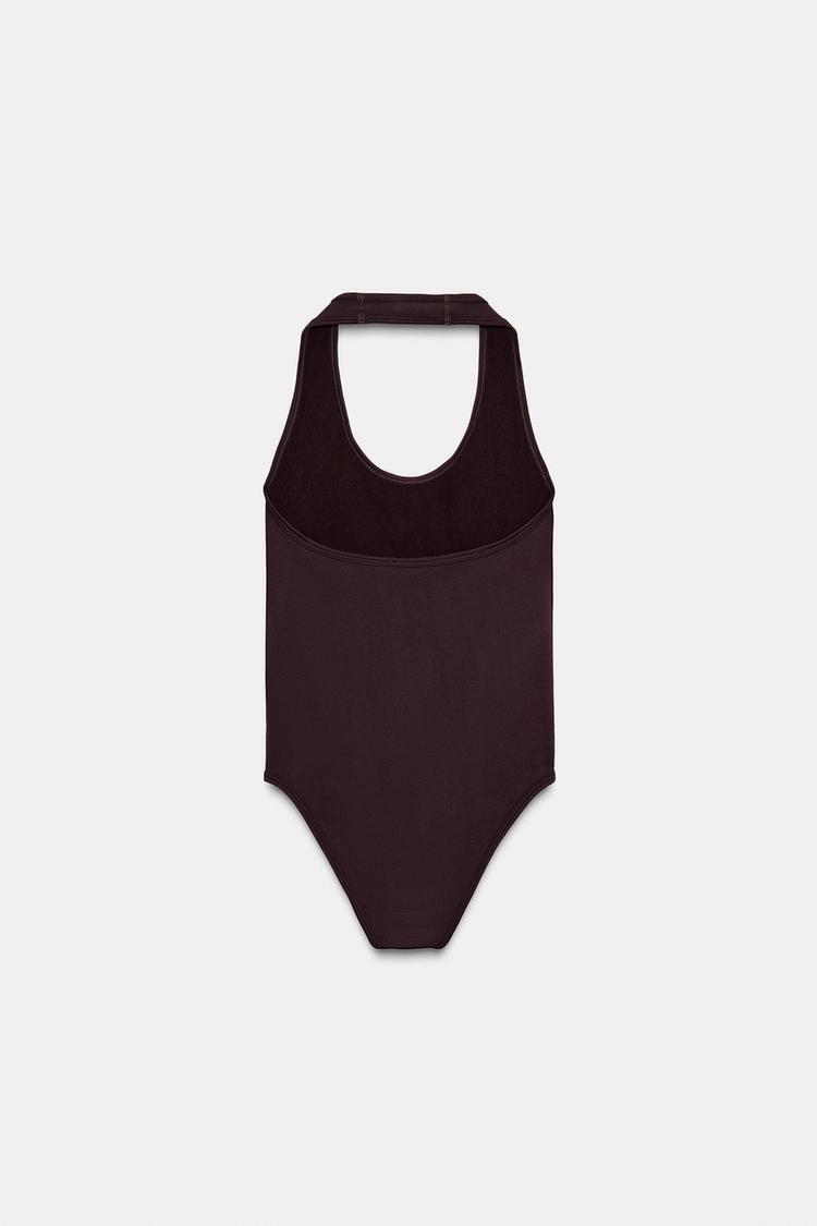 ZARA БЕСШОВНОЕ БОДИ С ГОРЛОВИНОЙ ХАЛТЕР, ШОКОЛАДНЫЙ
