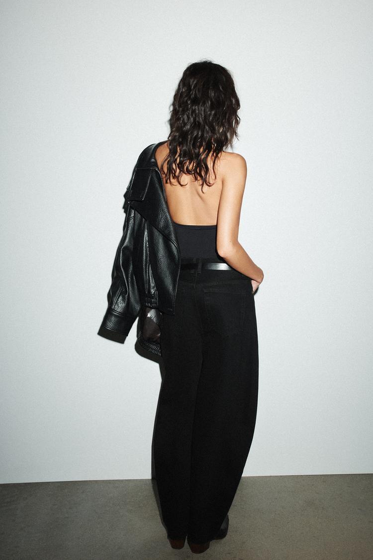 Боди с горловиной халтер из рубчатой ткани. Открытая спина.