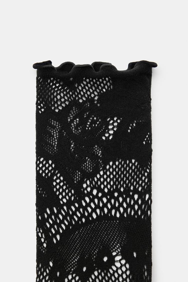 ZARA БЕСШОВНЫЕ НОСКИ С КРУЖЕВОМ, ЧЕРНЫЙ