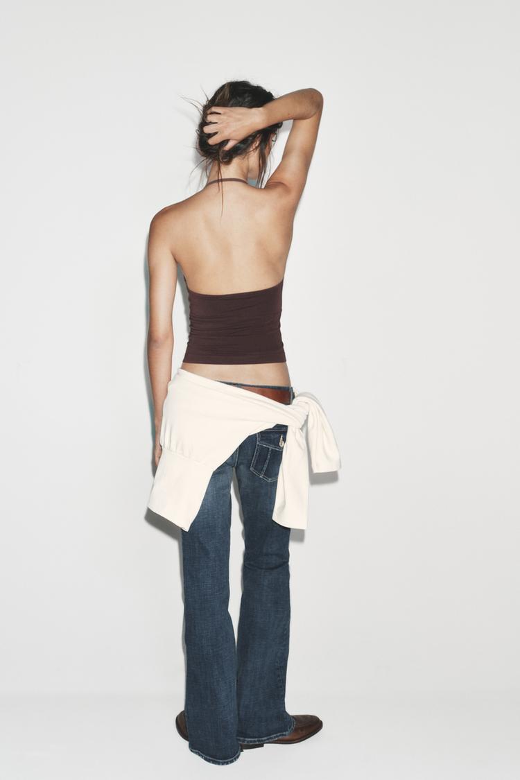 ZARA БЕСШОВНЫЙ ТОП С ГОРЛОВИНОЙ ХАЛТЕР, ШОКОЛАДНЫЙ