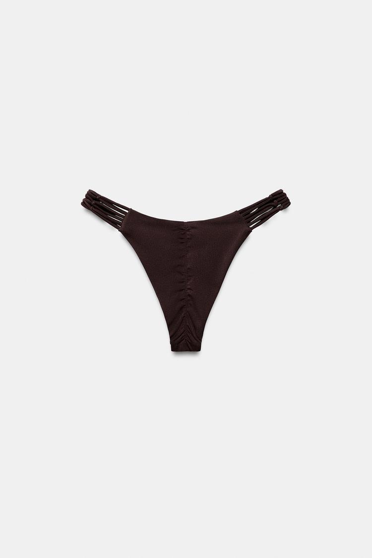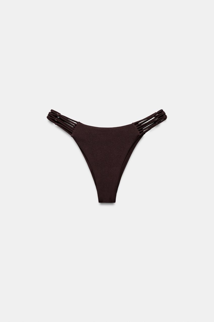 ZARA БИКИНИ-ПЛАВКИ ИЗ КРУЖЕВА КРОШЕ, ШОКОЛАДНЫЙ