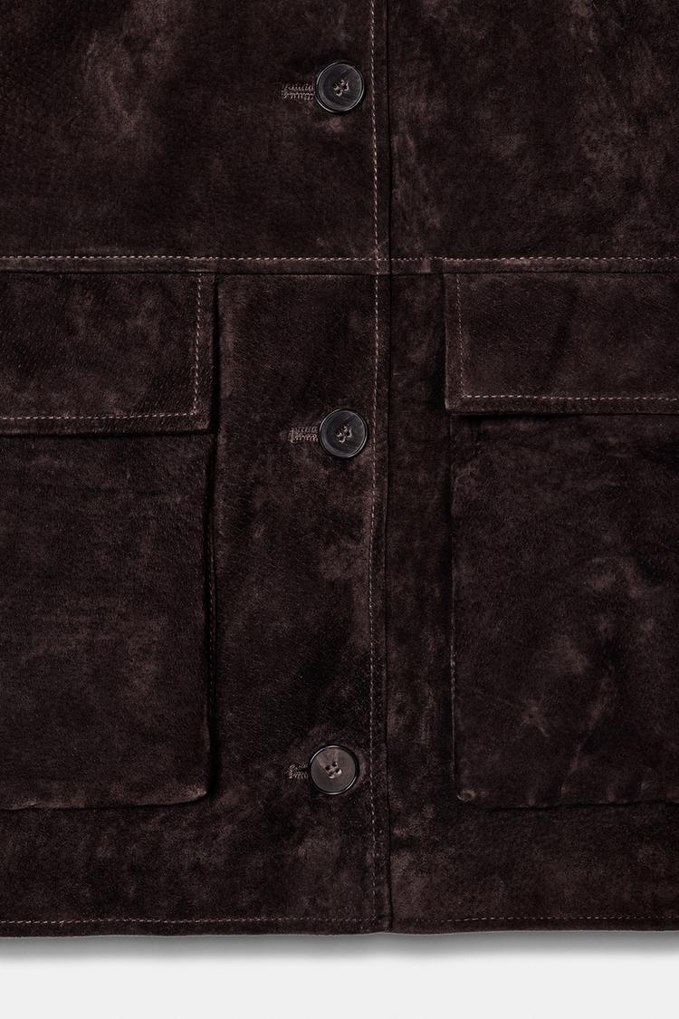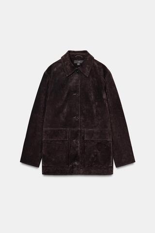 ZARA КУРТКА ИЗ 100% ЗАМШИ, КОРИЧНЕВЫЙ