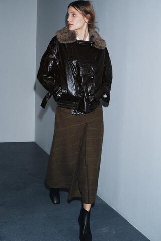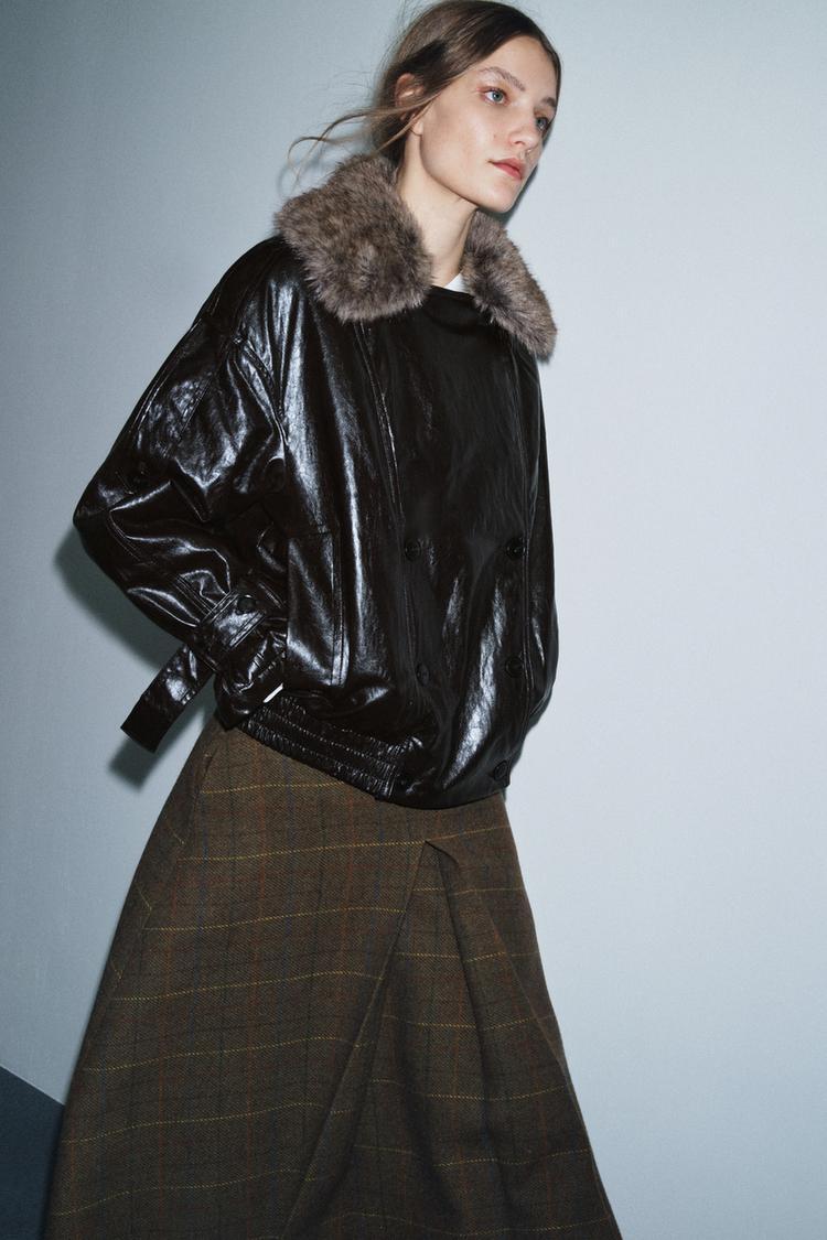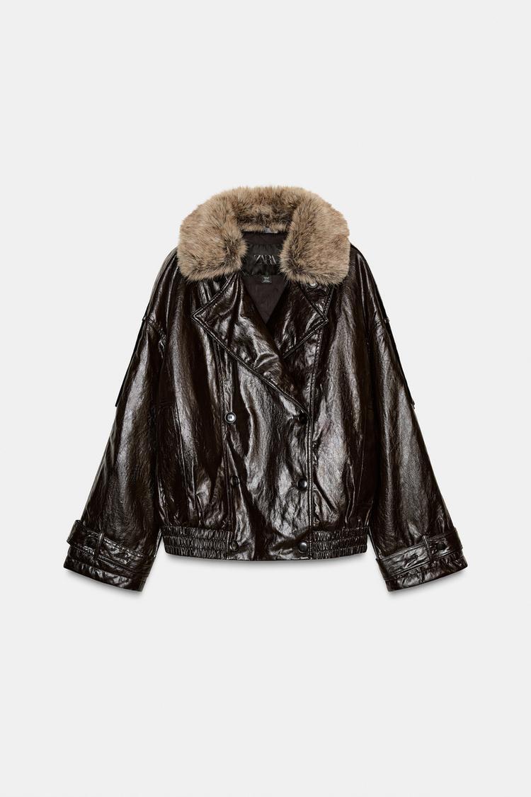 ZARA БЛЕСТЯЩАЯ КУРТКА С ВОРОТНИКОМ ИЗ ИСКУССТВЕННОГО МЕХА — ZW COLLECTION, КОРИЧНЕВЫЙ