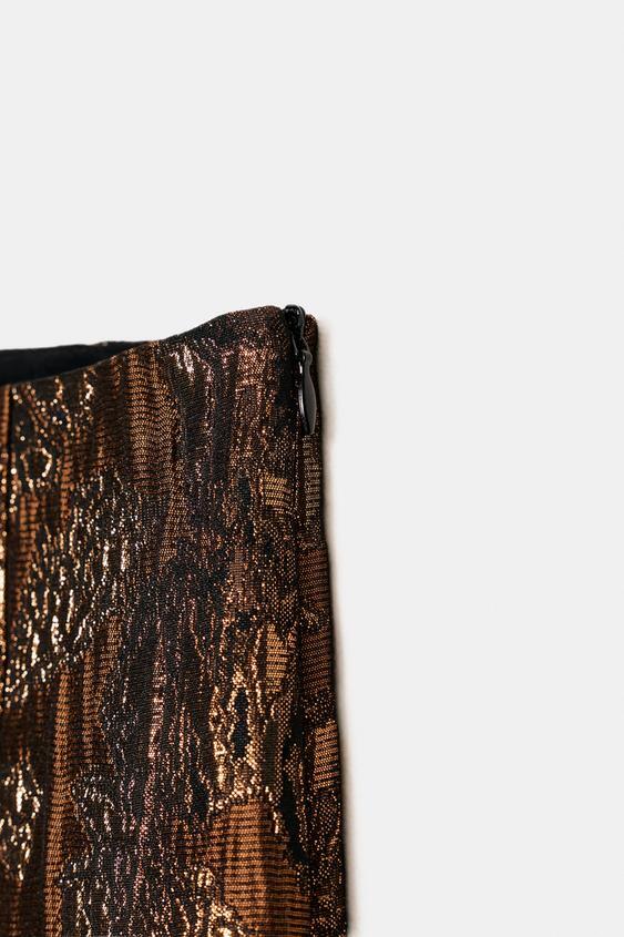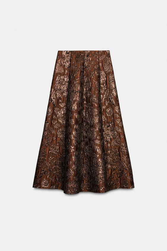 ZARA БЛЕСТЯЩАЯ ЖАККАРДОВАЯ ЮБКА-КЛЁШ, ОХРА