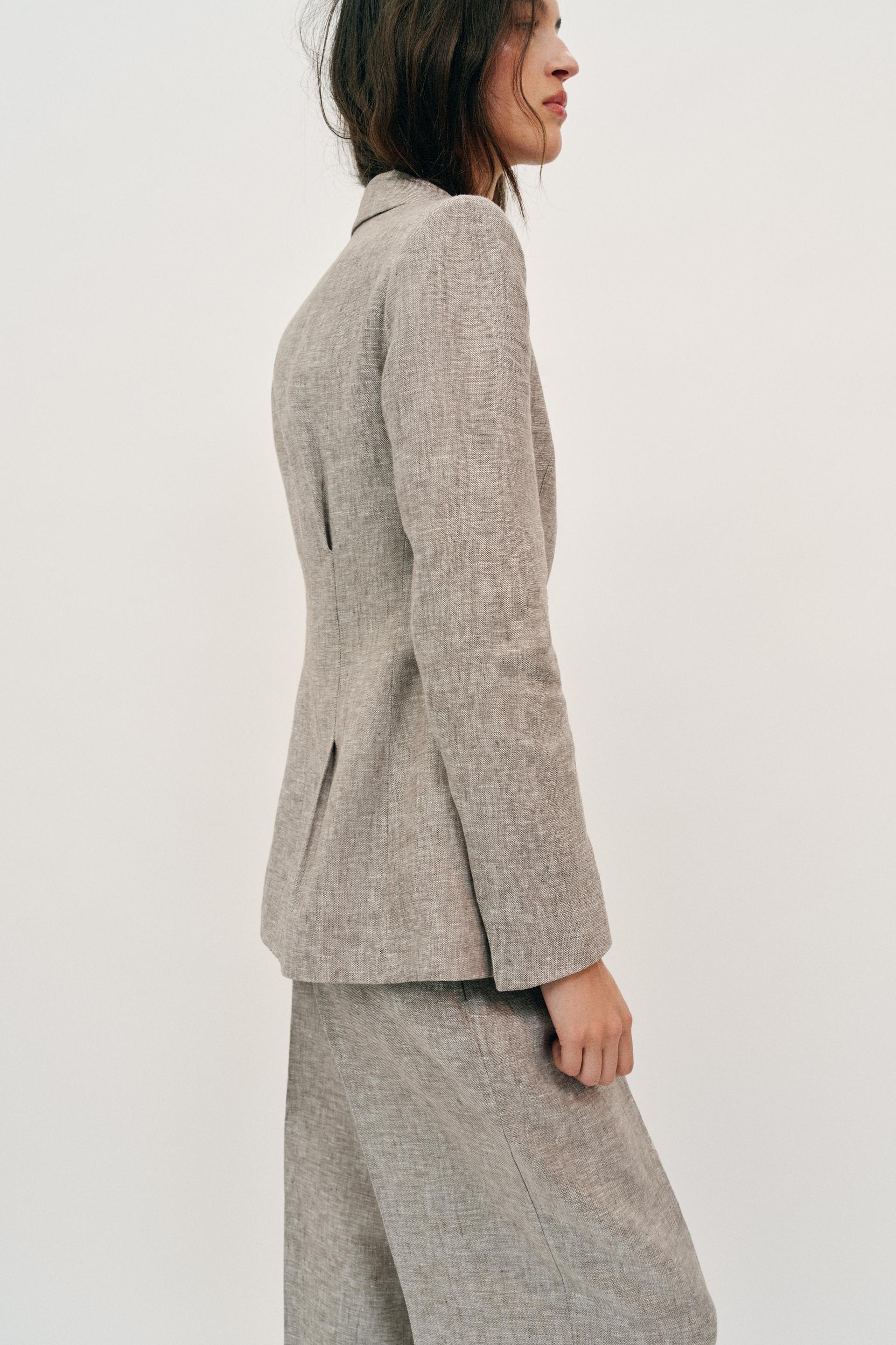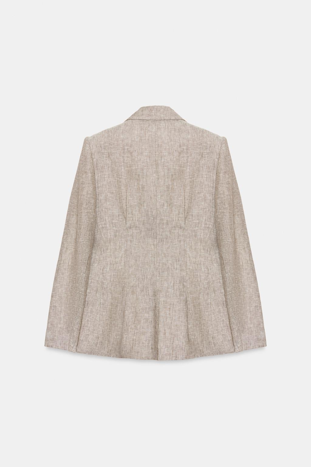 ZARA БЛЕЙЗЕР ИЗ 100% ЛЬНА С ПОДПЛЕЧНИКАМИ, ПЕСОЧНЫЙ МЕЛАНЖ