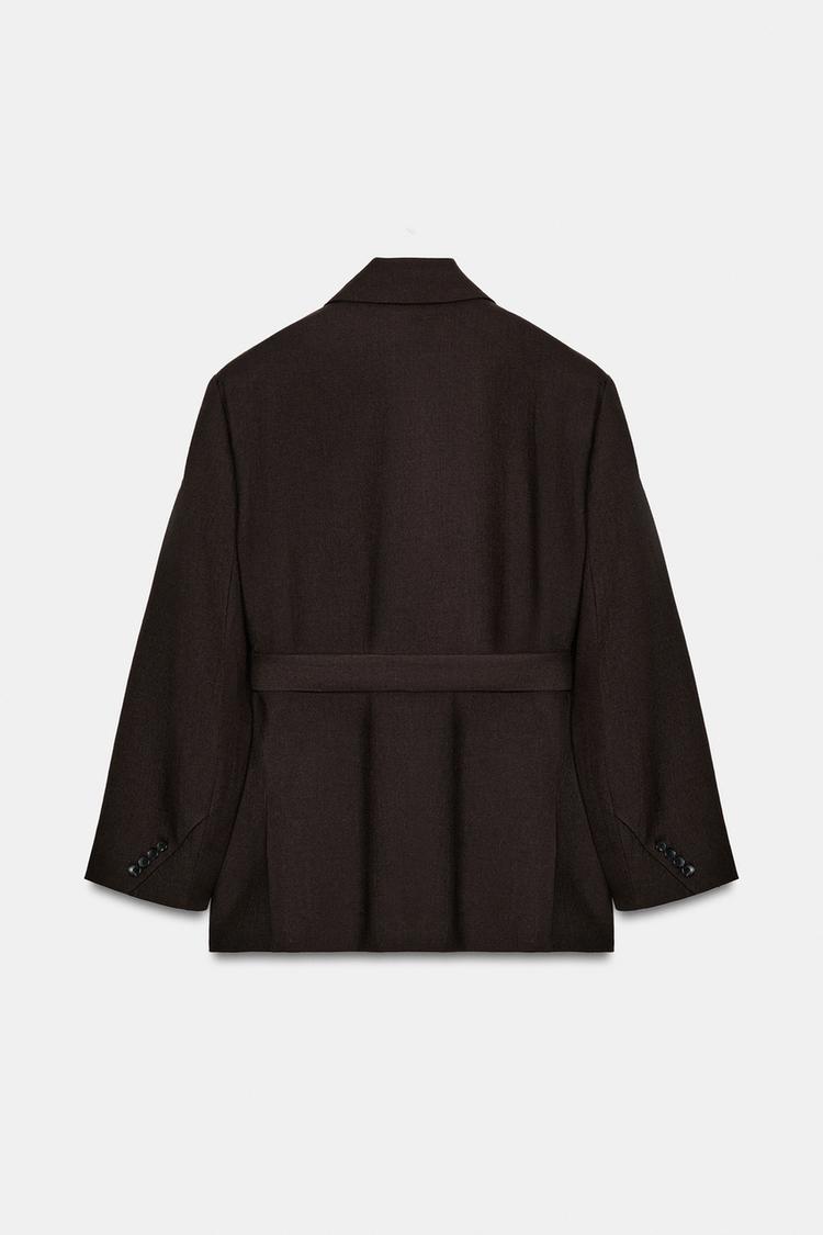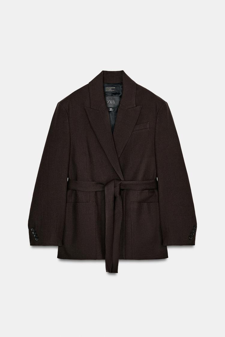 ZARA БЛЕЙЗЕР ИЗ 100% ШЕРСТИ С ПОЯСОМ — ZW COLLECTION LIMITED EDITION, ОТТЕНКИ КОРИЧНЕВОГО