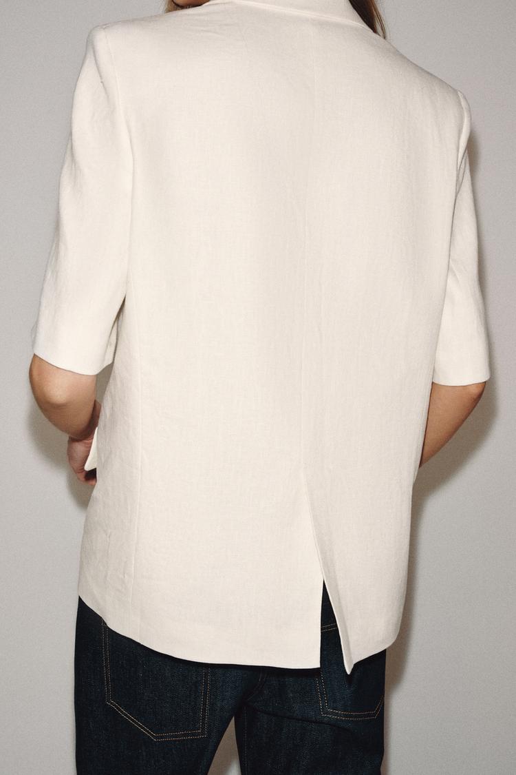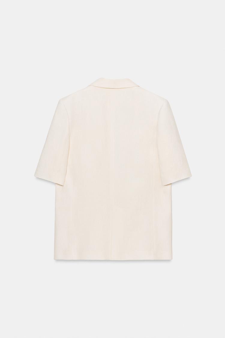 ZARA БЛЕЙЗЕР ИЗ ЛЬНА С КОРОТКИМИ РУКАВАМИ — ZW COLLECTION, ЭКРЮ