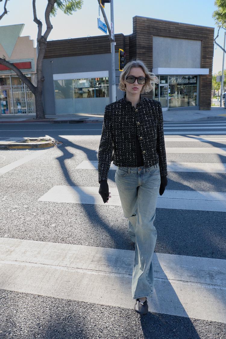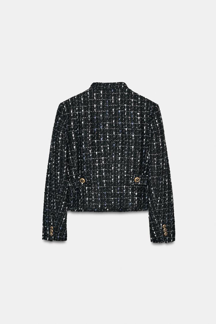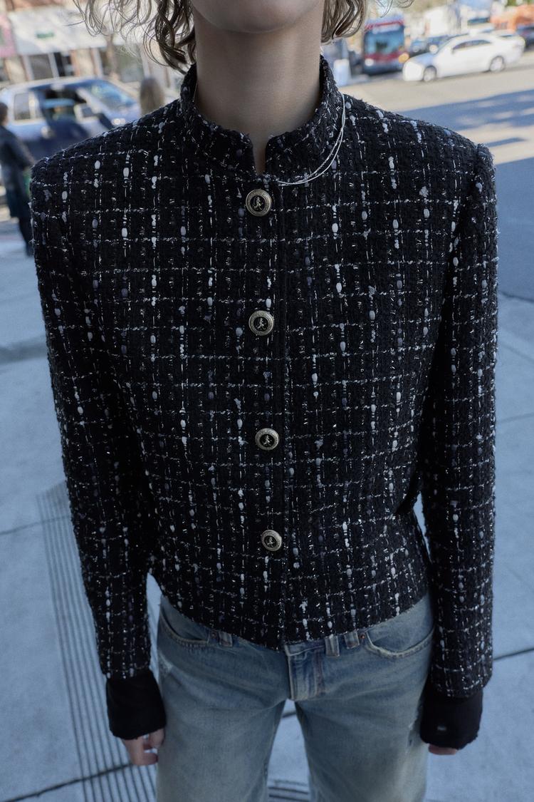 ZARA БЛЕЙЗЕР ИЗ РЕЛЬЕФНОЙ ТКАНИ С МЕТАЛЛИЗИРОВАННОЙ НИТЬЮ, ЧЕРНЫЙ/ЭКРЮ