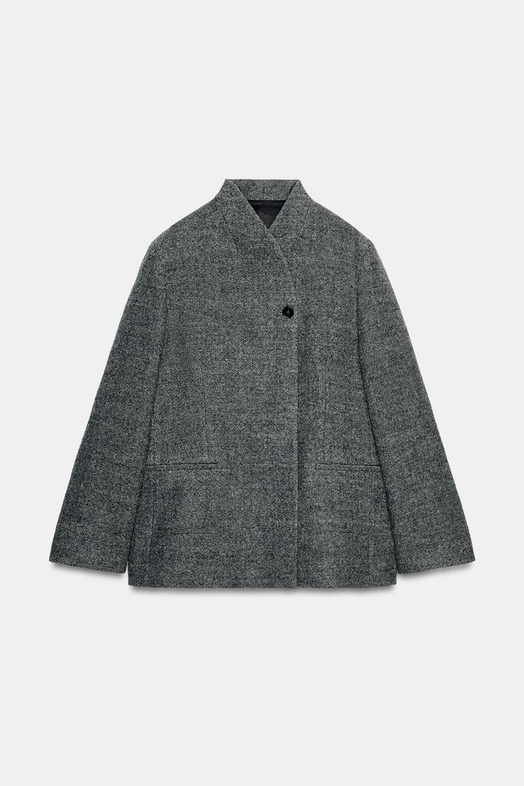 ZARA БЛЕЙЗЕР ИЗ ШЕРСТИ С ПУГОВИЦЕЙ — ZW COLLECTION LIMITED EDITION, МЯГКИЙ СЕРЫЙ