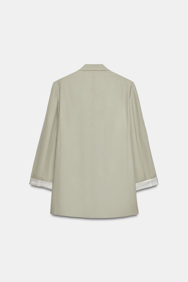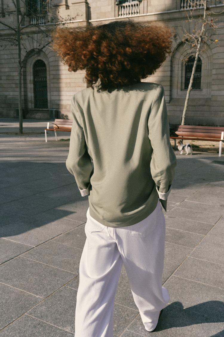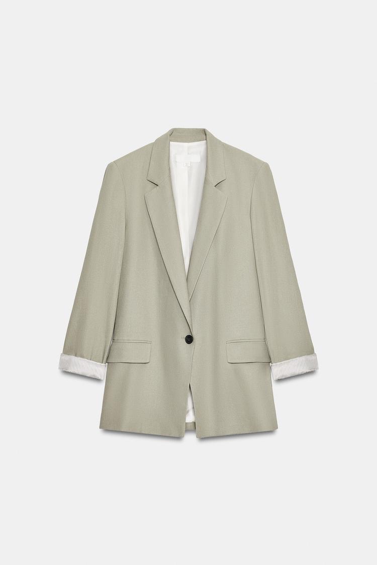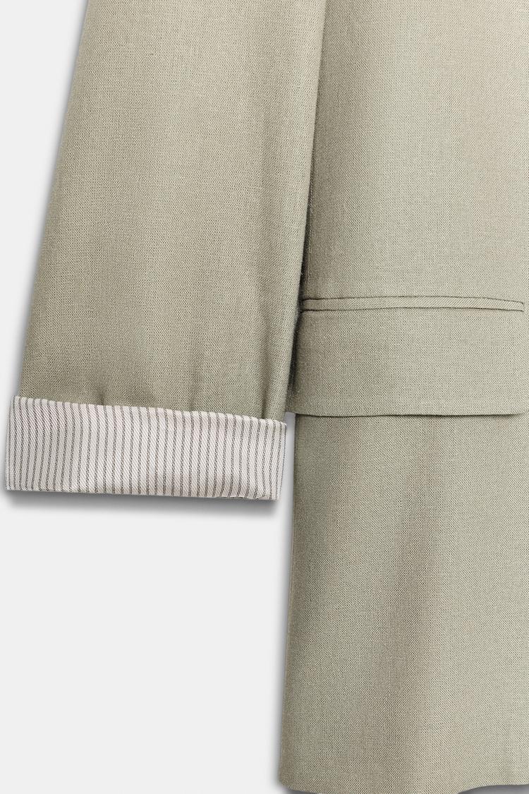 ZARA БЛЕЙЗЕР ИЗ СМЕСОВОГО ЛЬНА С ПОДВЕРНУТЫМИ РУКАВАМИ, СВЕТЛЫЙ ХАКИ