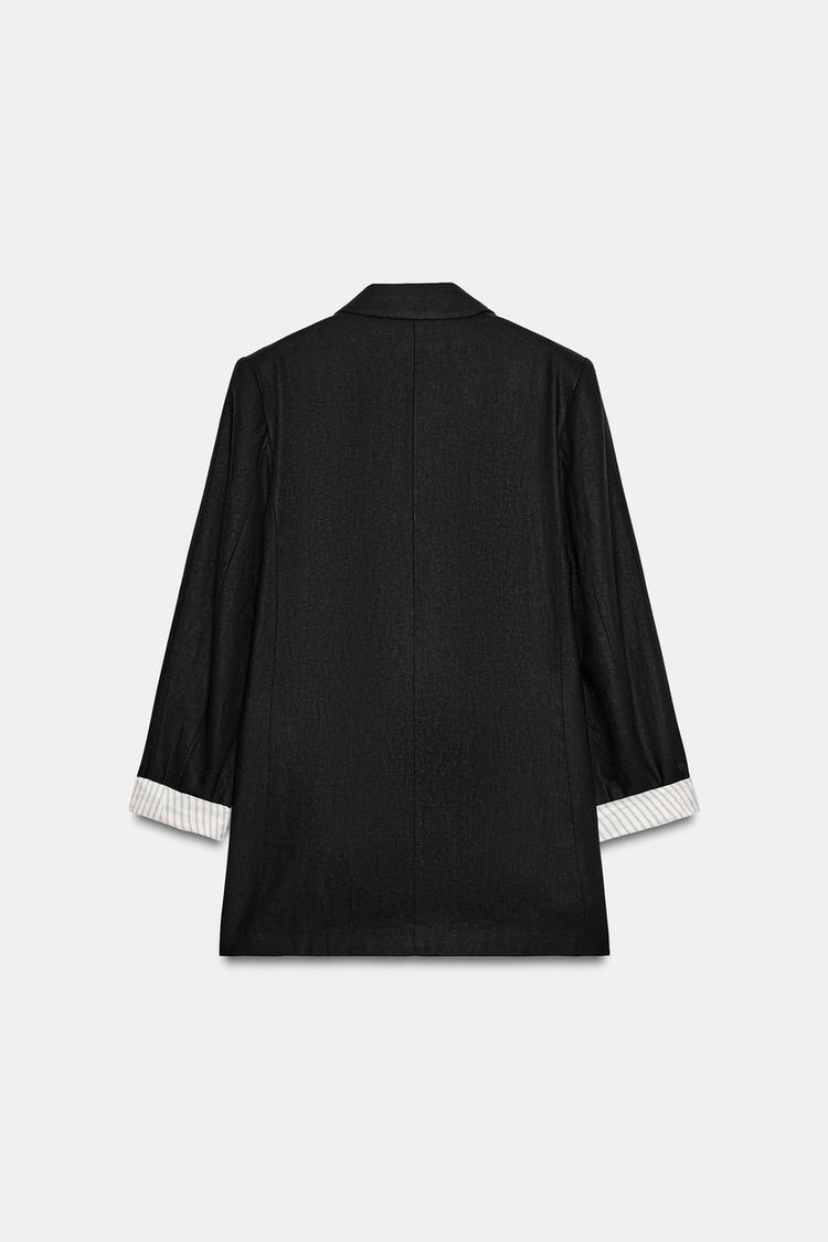 ZARA БЛЕЙЗЕР ИЗ СМЕСОВОГО ЛЬНА С ПОДВЕРНУТЫМИ РУКАВАМИ, ЧЕРНЫЙ