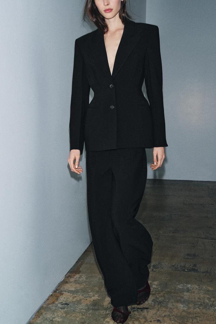 ZARA БЛЕЙЗЕР ОБЛЕГАЮЩЕГО КРОЯ С ДЕКОРАТИВНОЙ СТРОЧКОЙ — ZW COLLECTION, ЧЕРНЫЙ