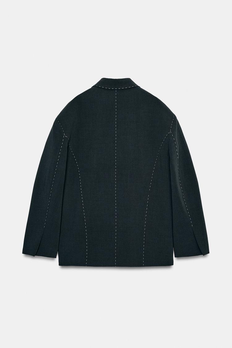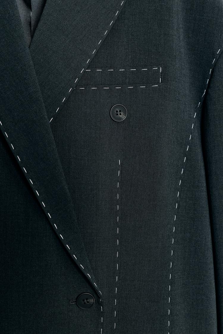 ZARA БЛЕЙЗЕР ОВЕРСАЙЗ С КОНТРАСТНОЙ ОТДЕЛКОЙ, АНТРАЦИТОВО-СЕРЫЙ