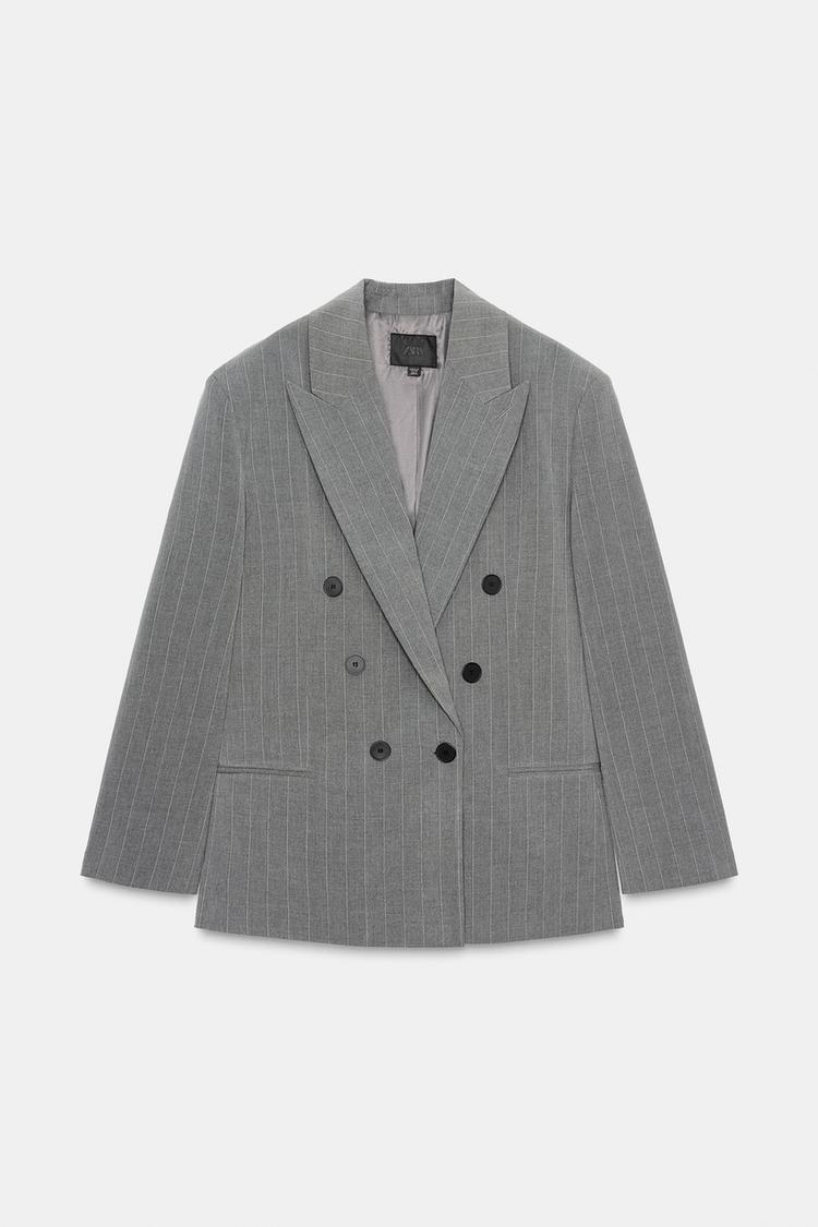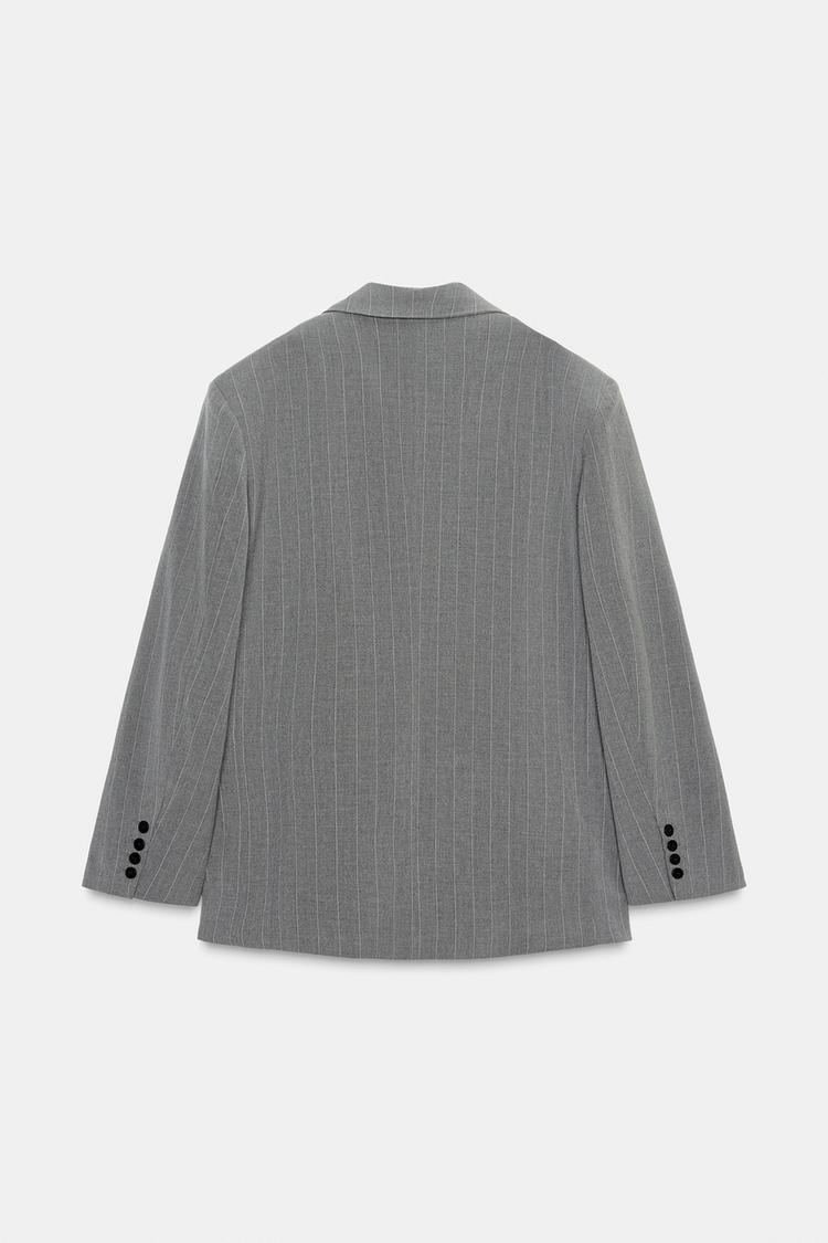 ZARA БЛЕЙЗЕР ОВЕРСАЙЗ В ТОНКУЮ ПОЛОСКУ, СЕРЫЙ/СИНИЙ