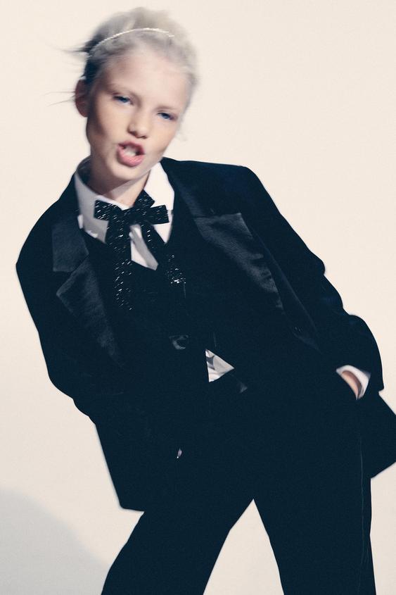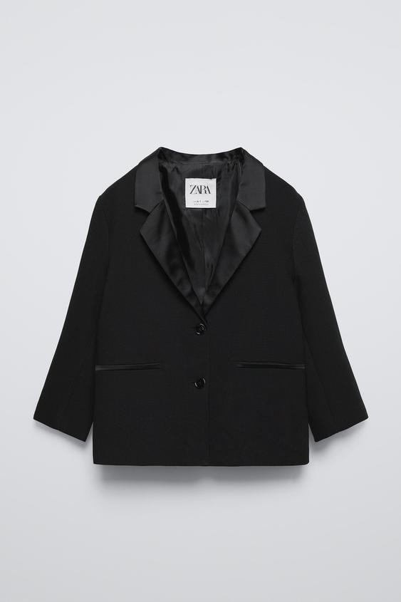 ZARA БЛЕЙЗЕР OVERSIZE С АТЛАСНЫМ ВОРОТНИКОМ, ЧЕРНЫЙ