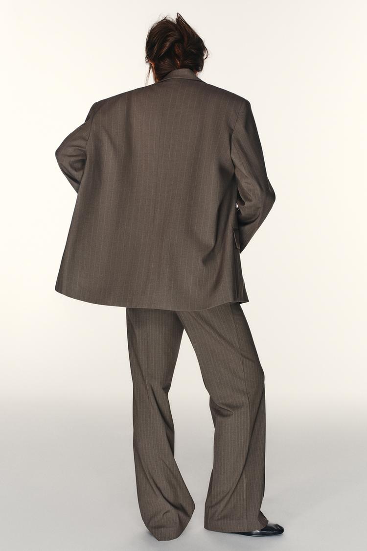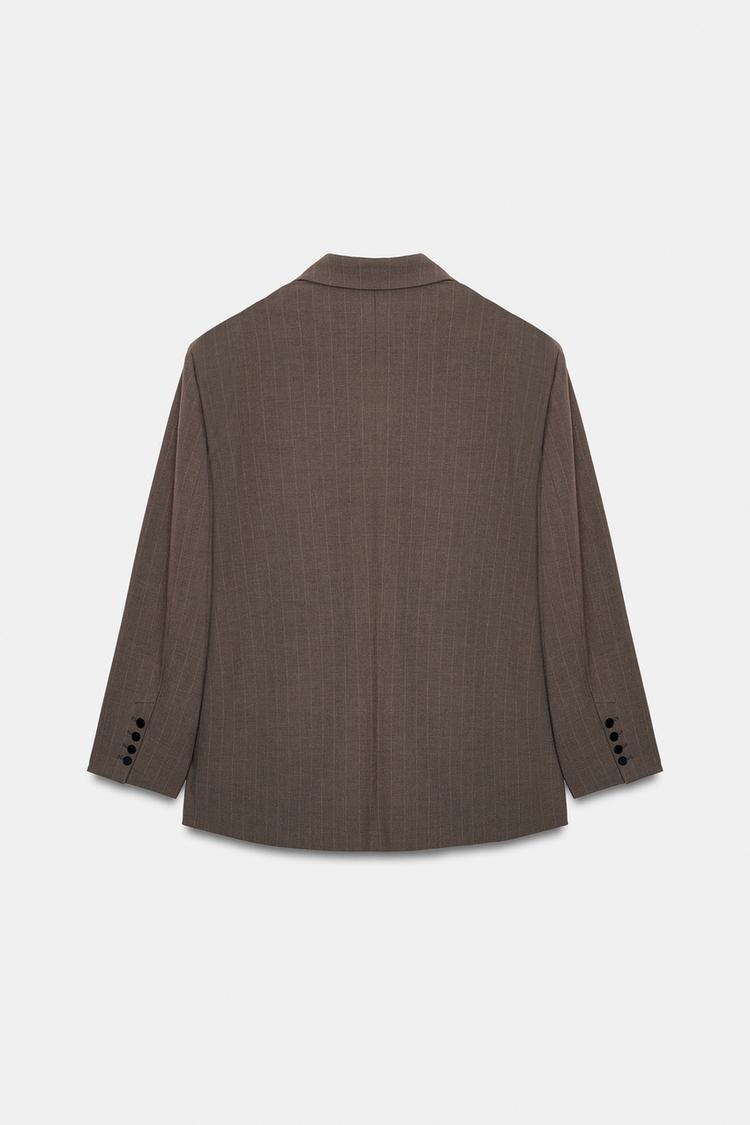 ZARA БЛЕЙЗЕР OVERSIZE В ПОЛОСКУ ИЗ ДВОЙНОЙ ТКАНИ, КОРИЧНЕВЫЙ/ЭКРЮ