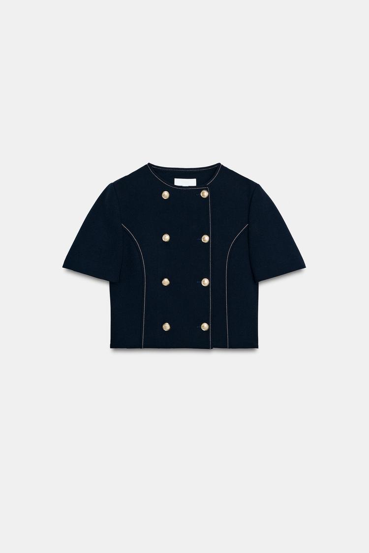 ZARA БЛЕЙЗЕР С КОРОТКИМ РУКАВОМ, МОРСКОЙ СИНИЙ