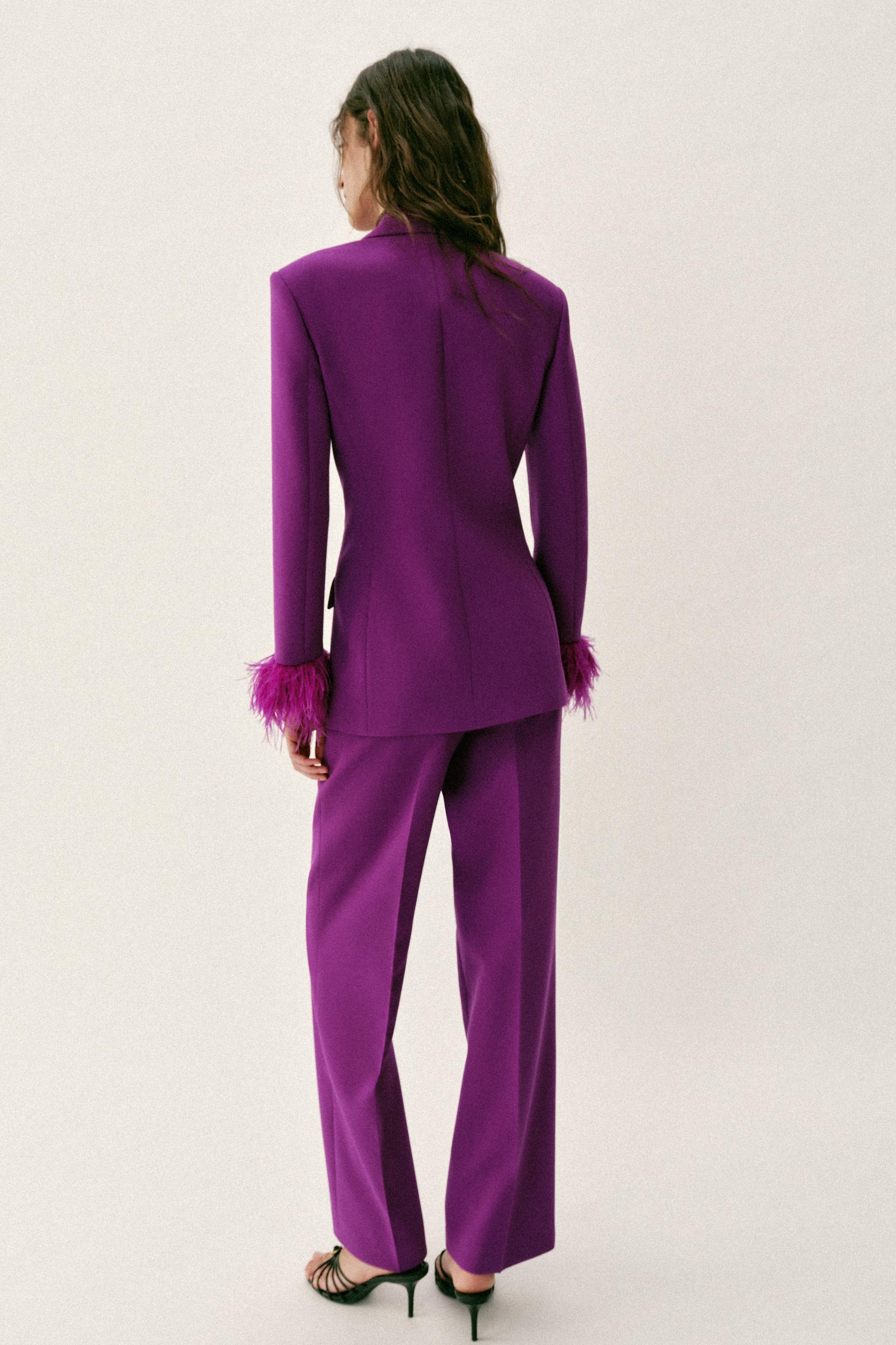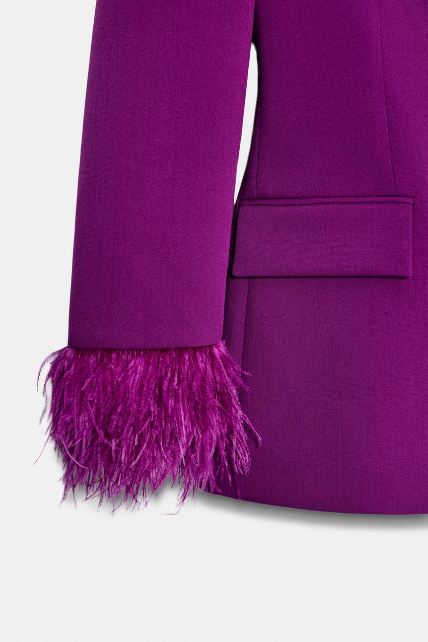 ZARA БЛЕЙЗЕР С ПЛЕЧАМИ И ПЕРЬЯМИ НА МАНЖЕТАХ, ПУРПУРНЫЙ