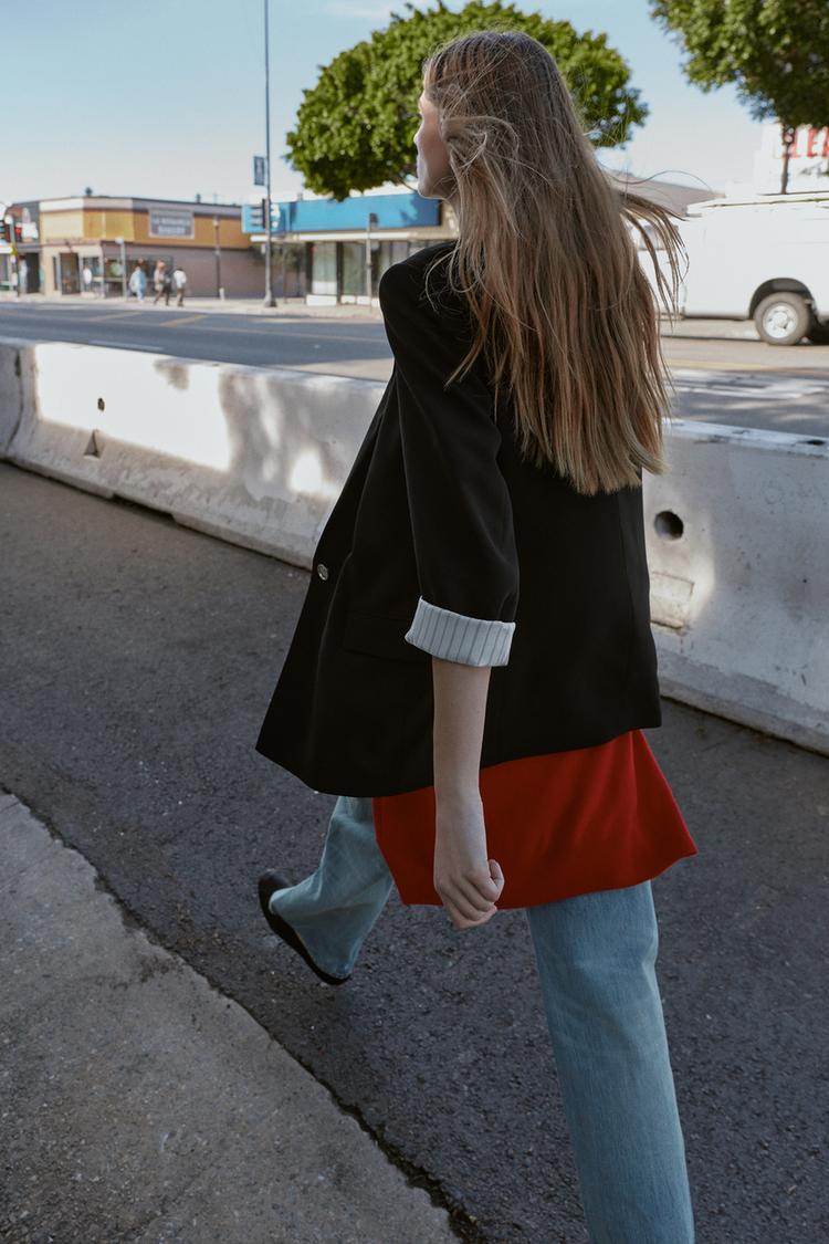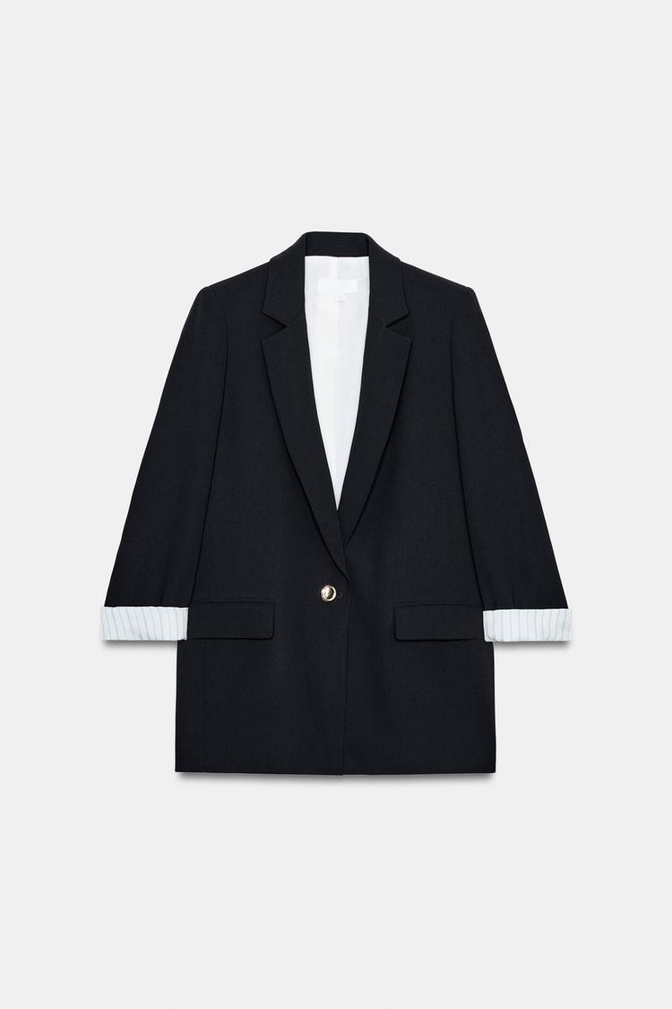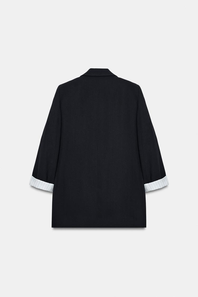ZARA БЛЕЙЗЕР С ПРИНТОМ НА МАНЖЕТАХ, ЧЕРНЫЙ