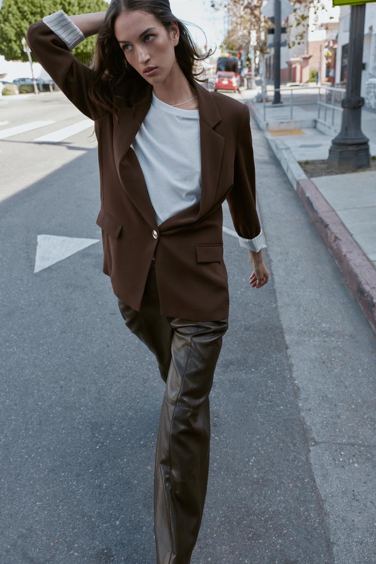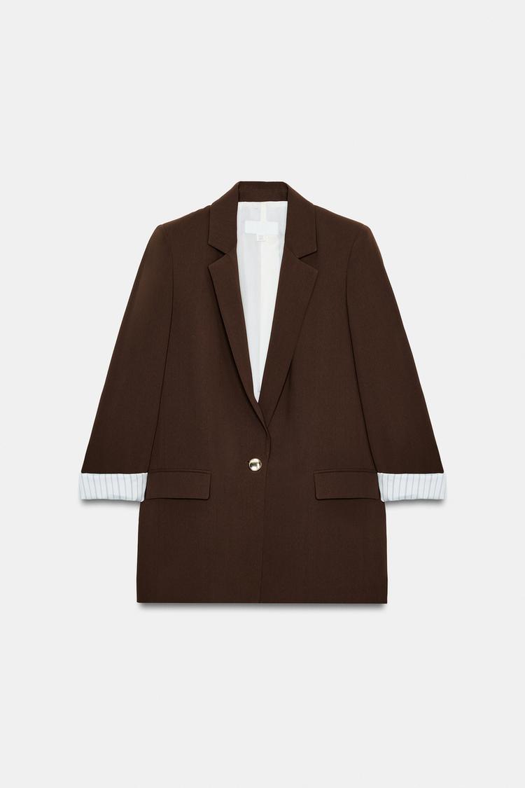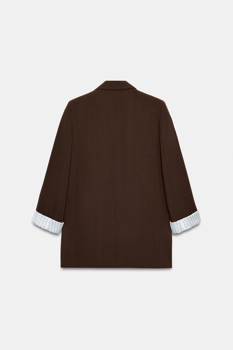 ZARA БЛЕЙЗЕР С ПРИНТОМ НА МАНЖЕТАХ, КОРИЧНЕВЫЙ