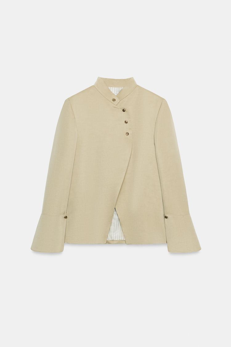 ZARA БЛЕЙЗЕР С ВОЛАНОМ — LIMITED EDITION, ZW COLLECTION, БЕЖЕВЫЙ