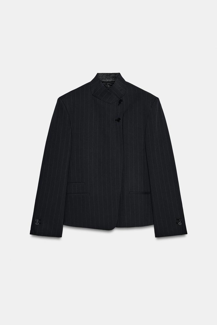 ZARA БЛЕЙЗЕР С ВОРОТНИКОМ-СТОЙКОЙ В ТОНКУЮ ПОЛОСКУ — ZW COLLECTION, ПОЛОСКИ