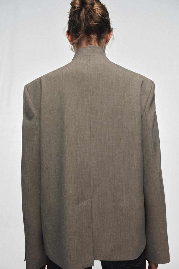 ZARA БЛЕЙЗЕР С ВОРОТНИКОМ-СТОЙКОЙ — ZW COLLECTION, КАМЕННО-СЕРЫЙ