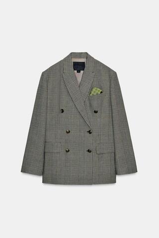 ZARA БЛЕЙЗЕР В КЛЕТКУ ИЗ ШЕРСТИ — ZW COLLECTION, БЕЖЕВЫЙ