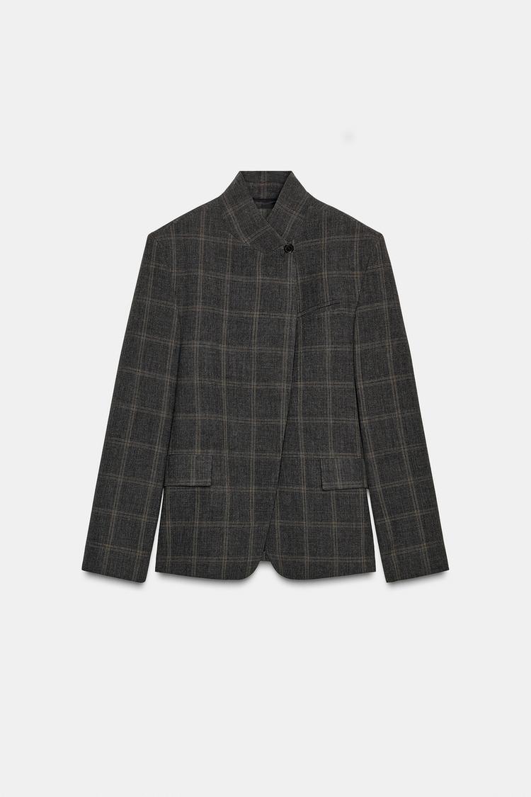 ZARA БЛЕЙЗЕР В КЛЕТКУ — ZW COLLECTION LIMITED EDITION, СЕРЫЙ МЕЛАНЖ