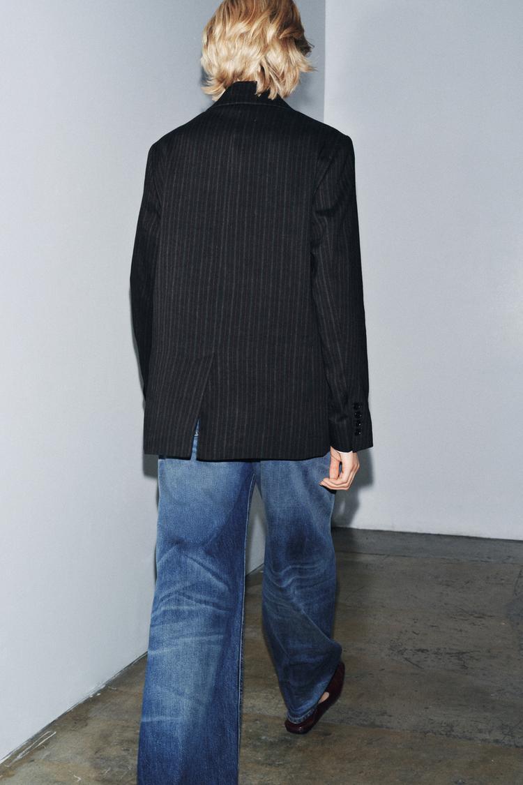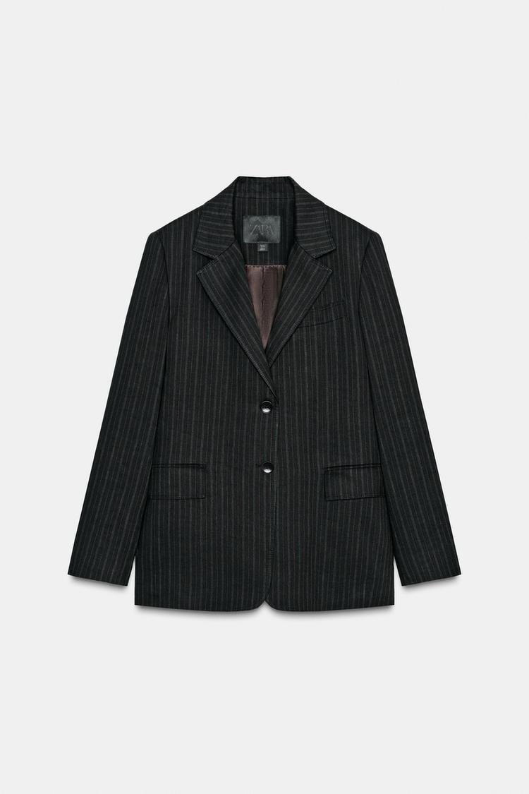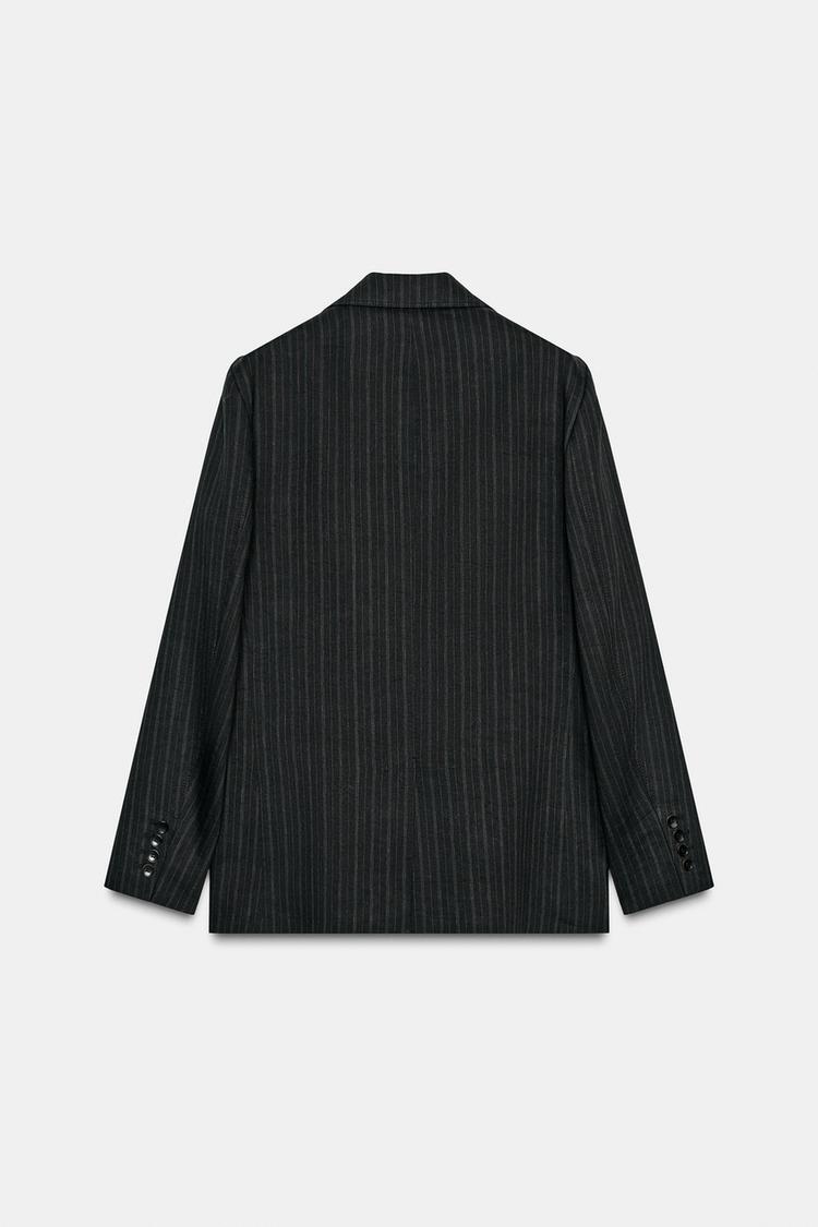 ZARA БЛЕЙЗЕР В ПОЛОСКУ С ЛЬНОМ — ZW COLLECTION, ЧЕРНЫЙ