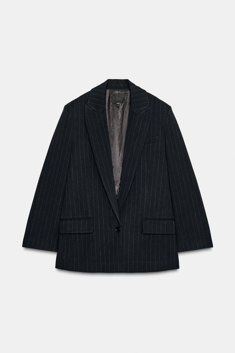 ZARA БЛЕЙЗЕР В ТОНКУЮ ПОЛОСКУ С КАРМАНАМИ, МОРСКОЙ СИНИЙ