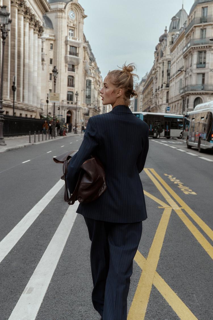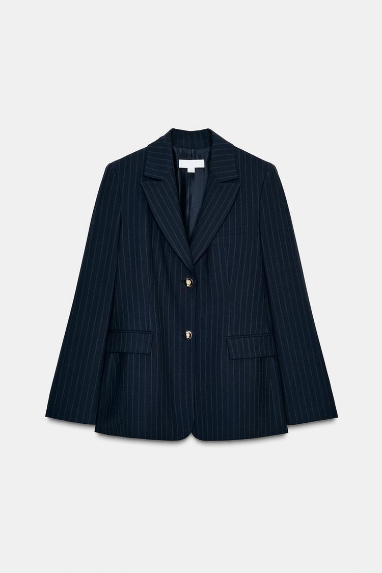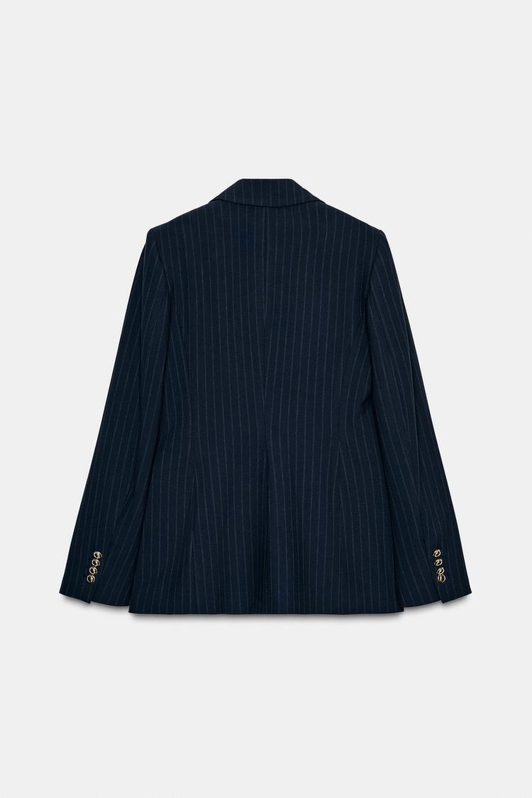 ZARA БЛЕЙЗЕР В ТОНКУЮ ПОЛОСКУ С ПОДПЛЕЧНИКАМИ, МОРСКОЙ СИНИЙ
