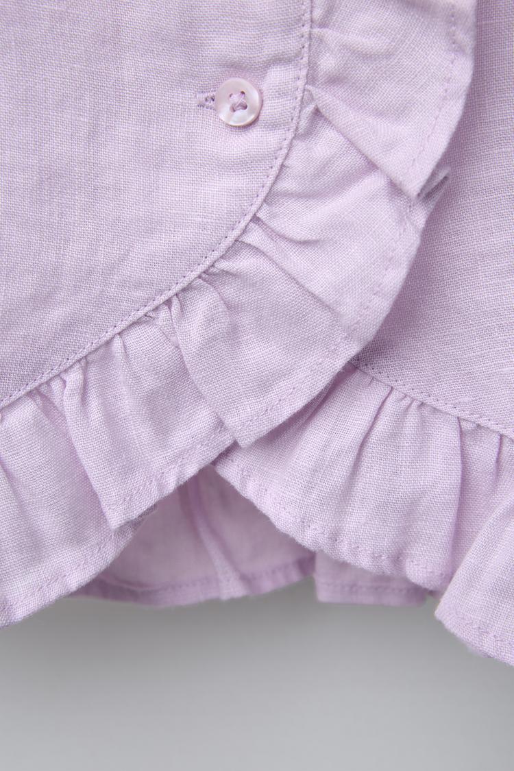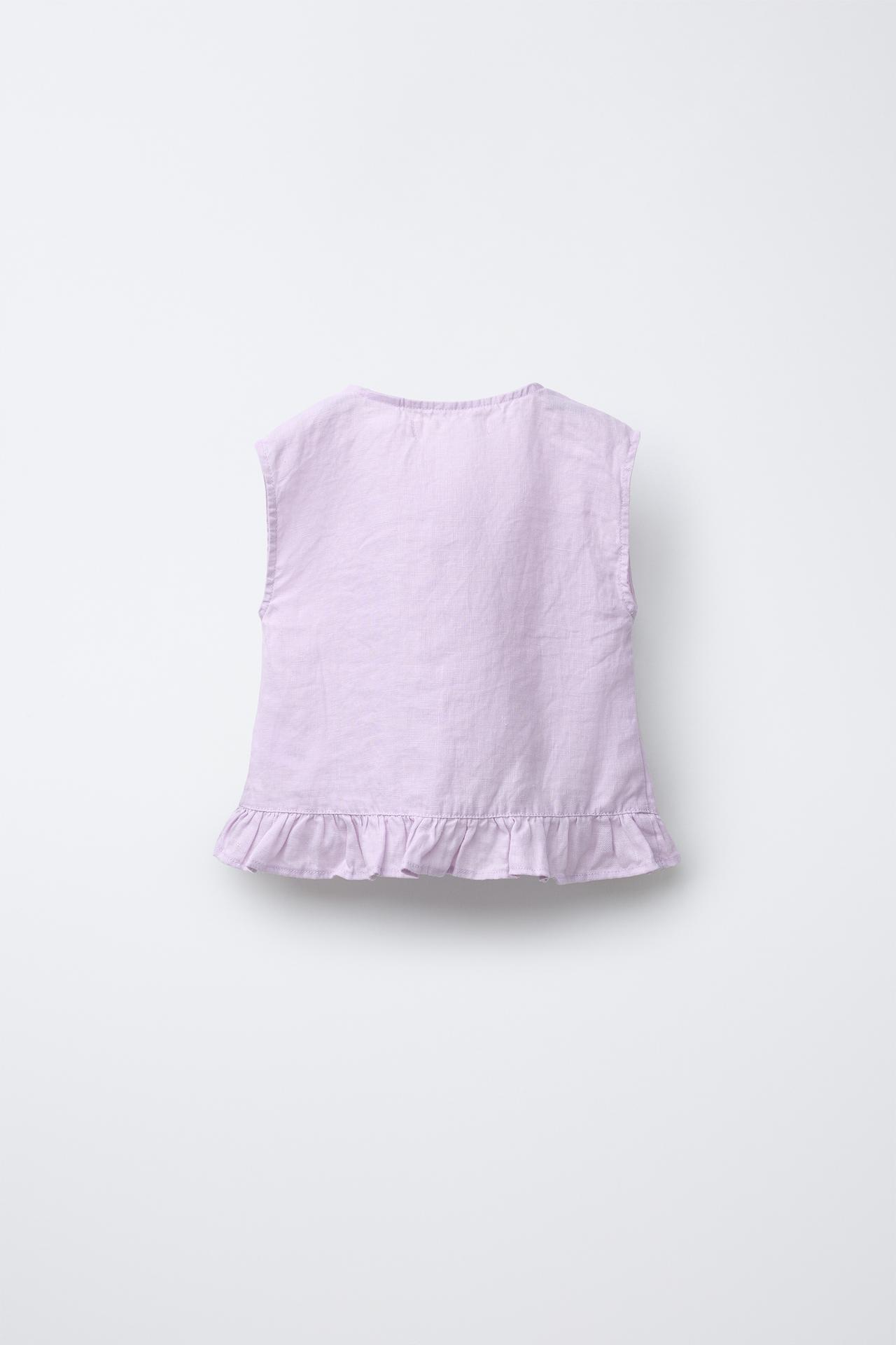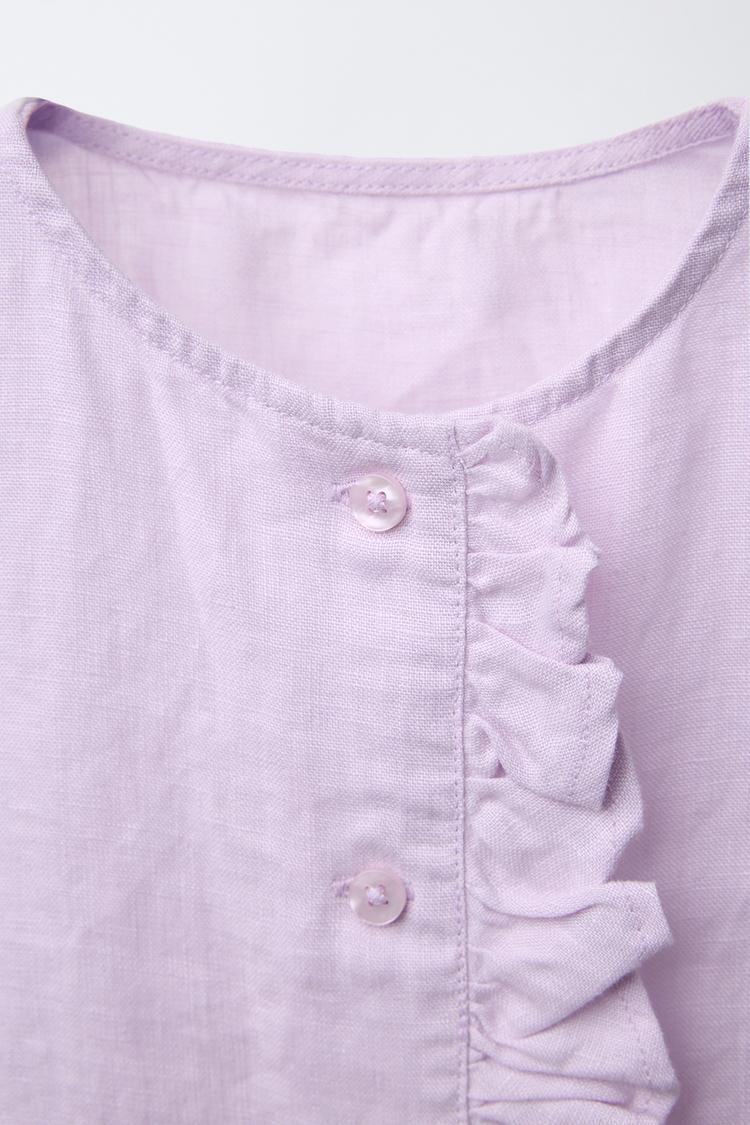 ZARA БЛУЗА ИЗ 100% ЛЬНА С ВОЛАНАМИ, ЦВЕТ МАЛЬВЫ