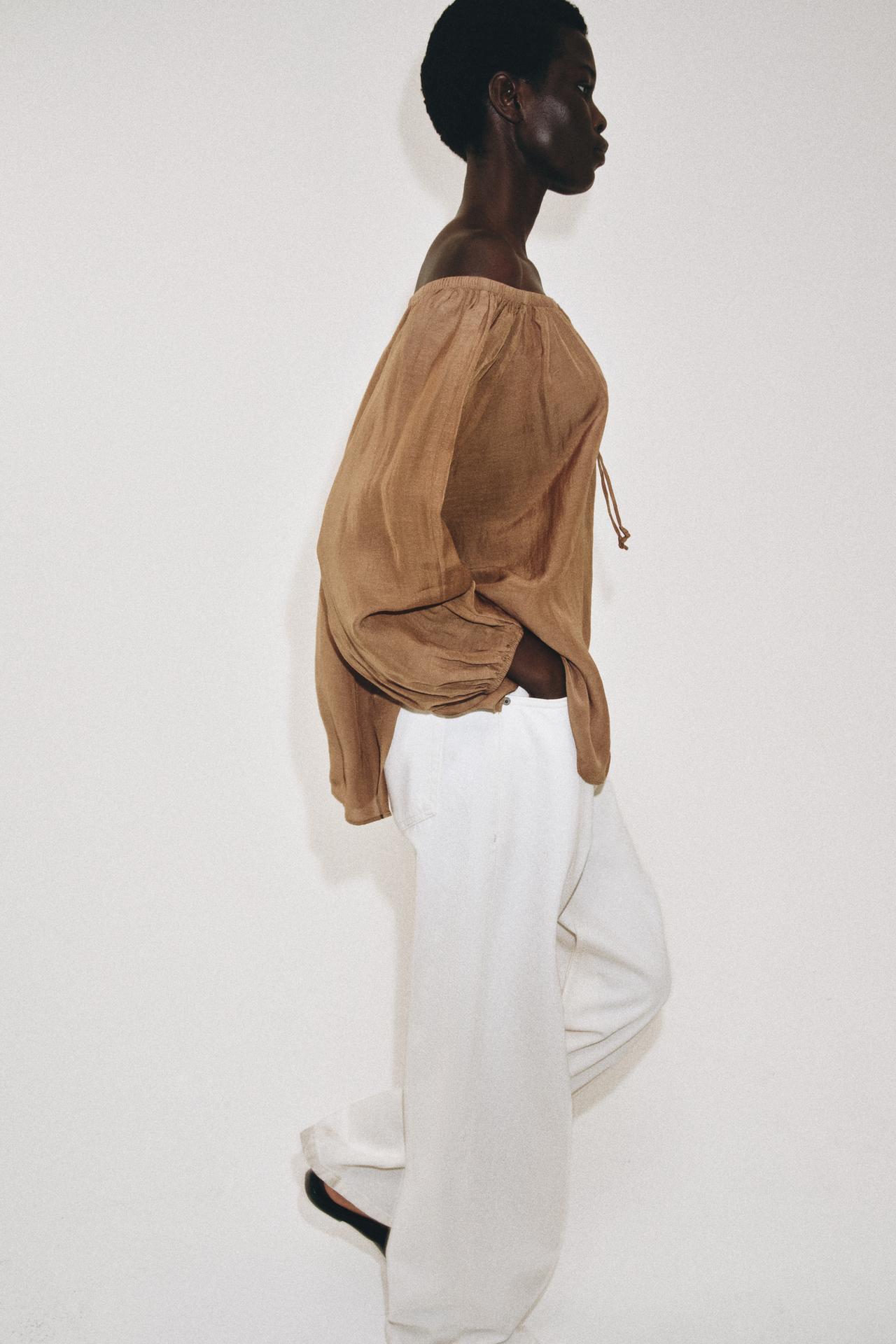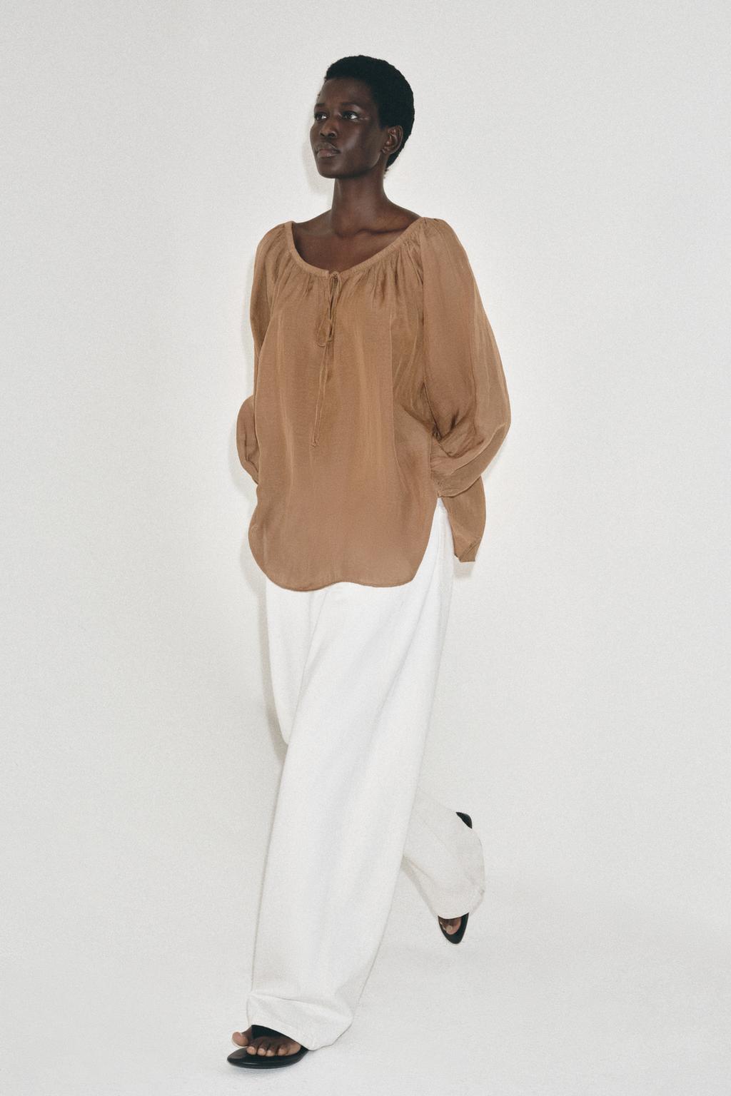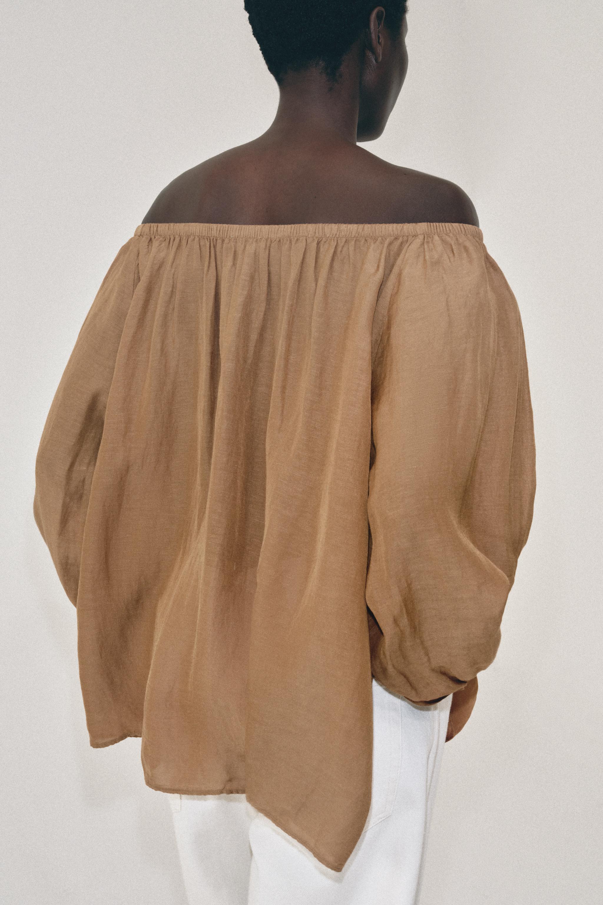ZARA БЛУЗА ИЗ ЛЬНА — ZW COLLECTION, СВЕТЛО-КОРИЧНЕВЫЙ