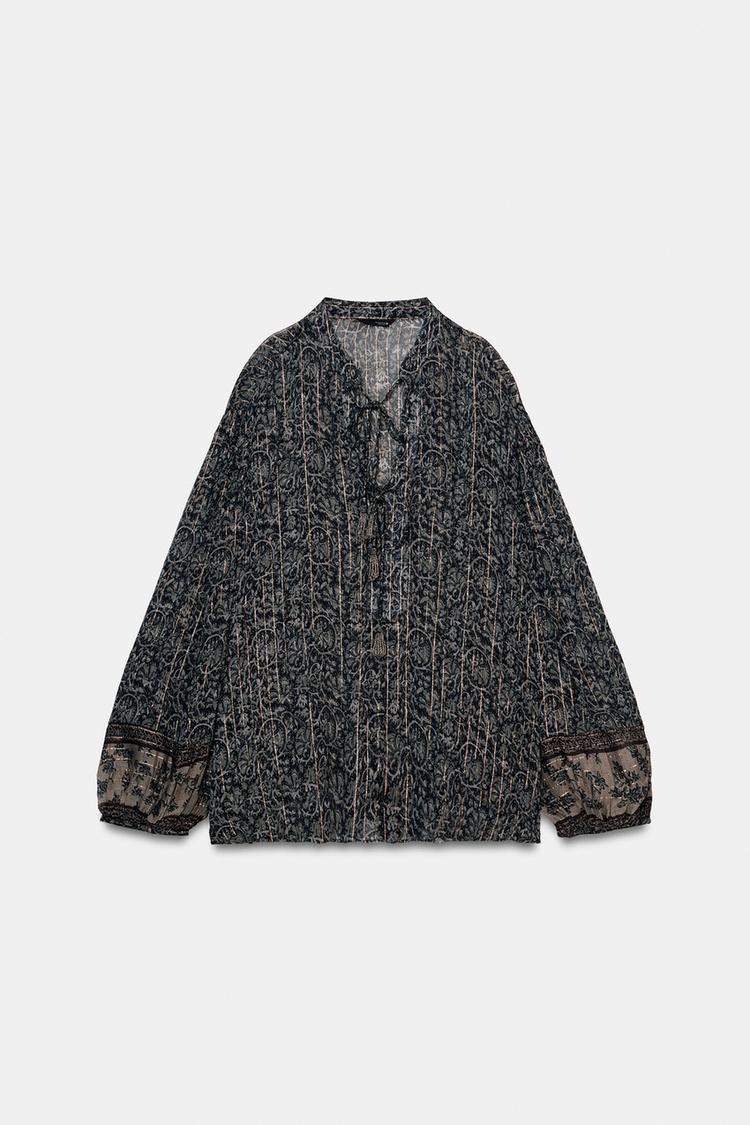 ZARA БЛУЗА ИЗ ТКАНИ С ПРИНТОМ И БЛЕСТЯЩЕЙ НИТЬЮ, РАЗНОЦВЕТНЫЙ