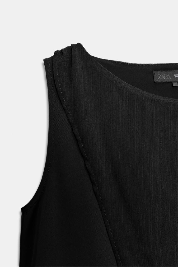 ZARA БЛУЗА С КОМБИНИРОВАННОЙ НАКИДКОЙ, ЧЕРНЫЙ