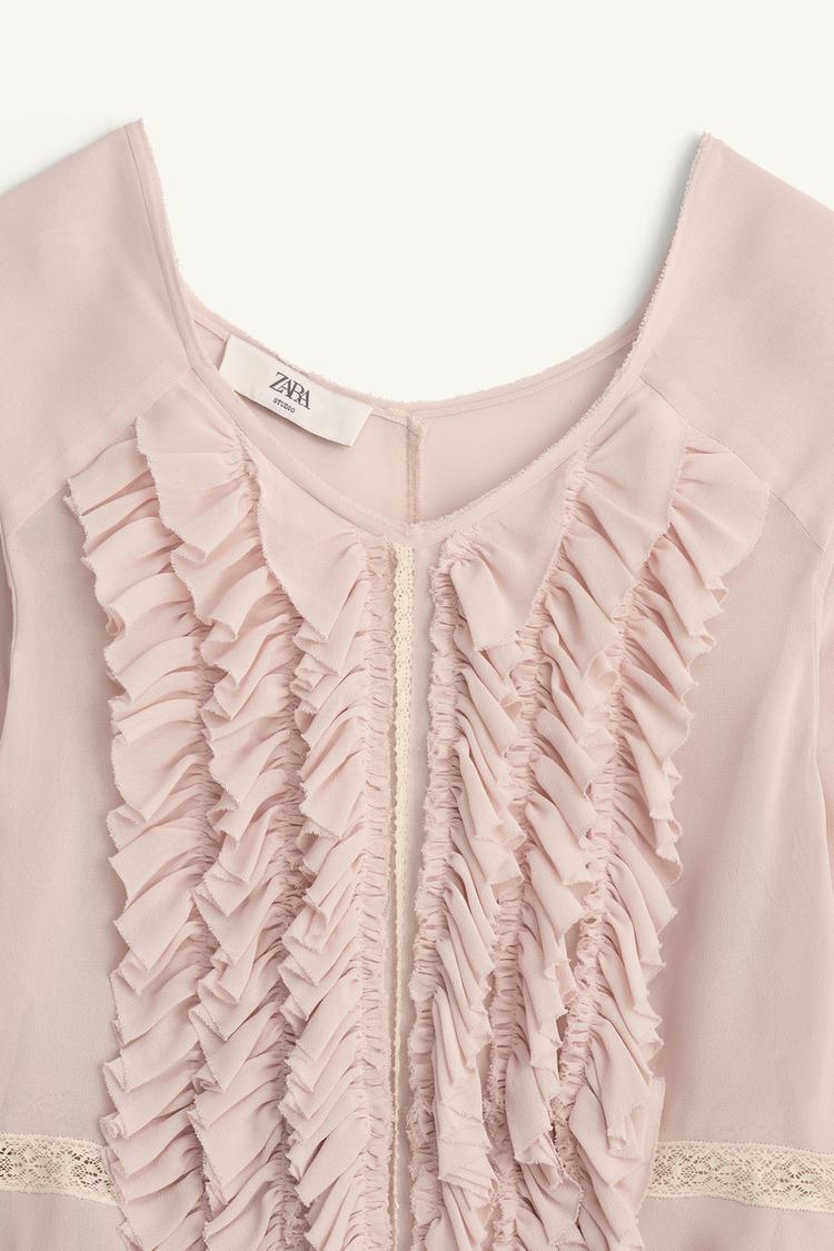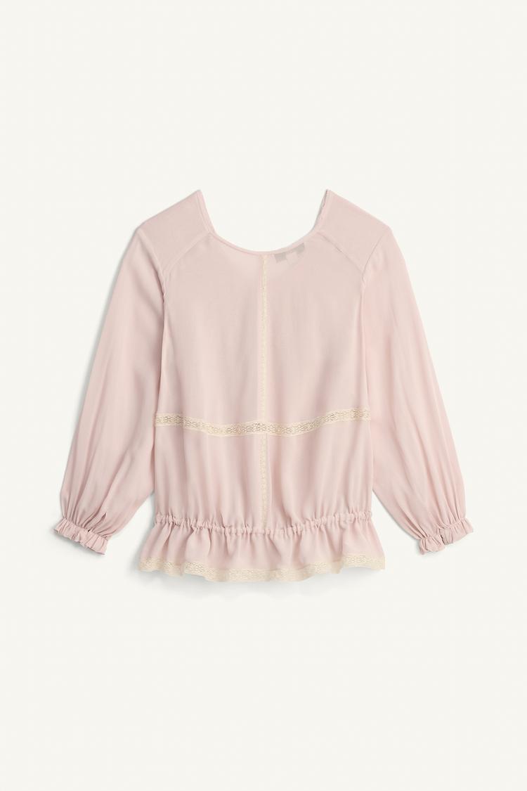 ZARA БЛУЗА С КРУЖЕВОМ - LIMITED EDITION, ПУДРОВО-РОЗОВЫЙ