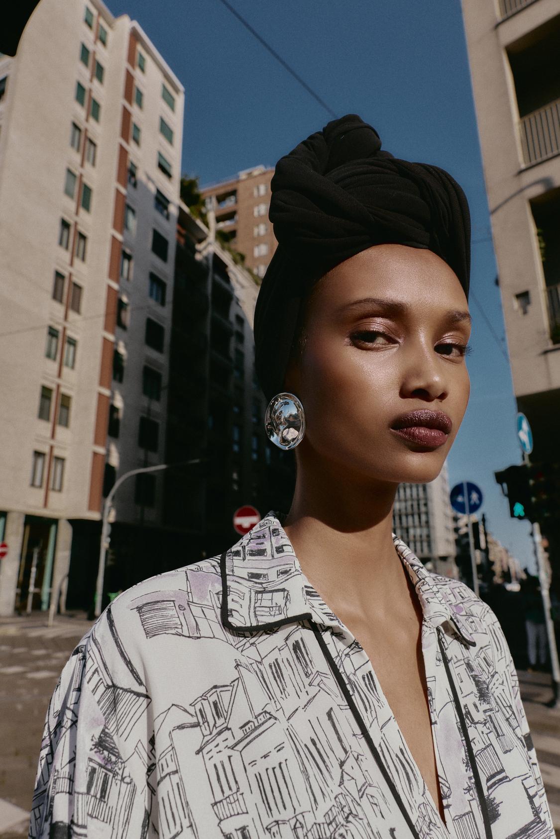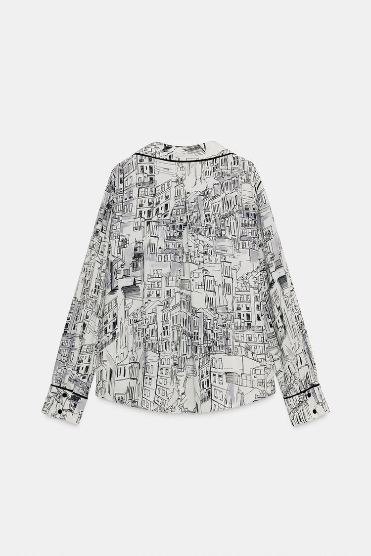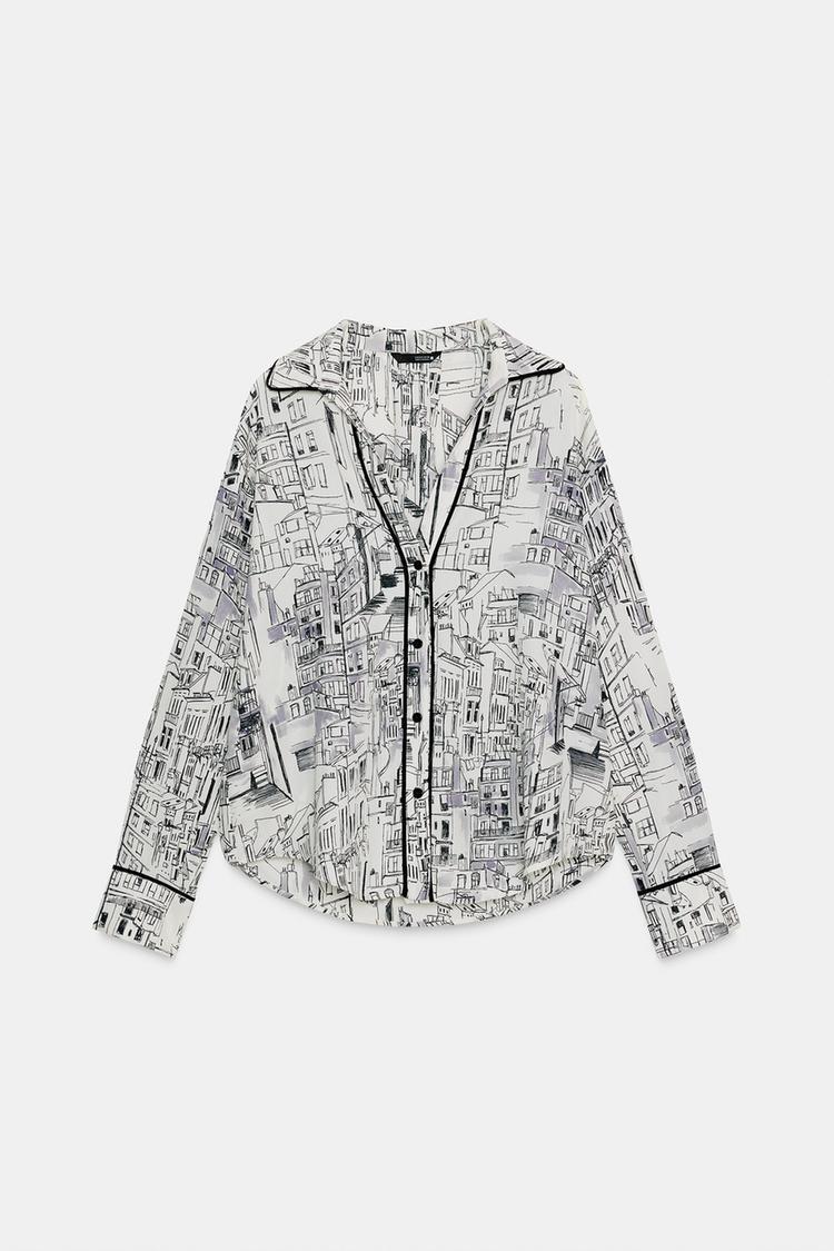 ZARA БЛУЗА С ПРИНТОМ И ОТДЕЛКОЙ КАНТОМ, ЭКРЮ/ЧЕРНЫЙ